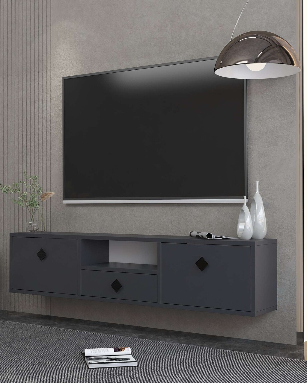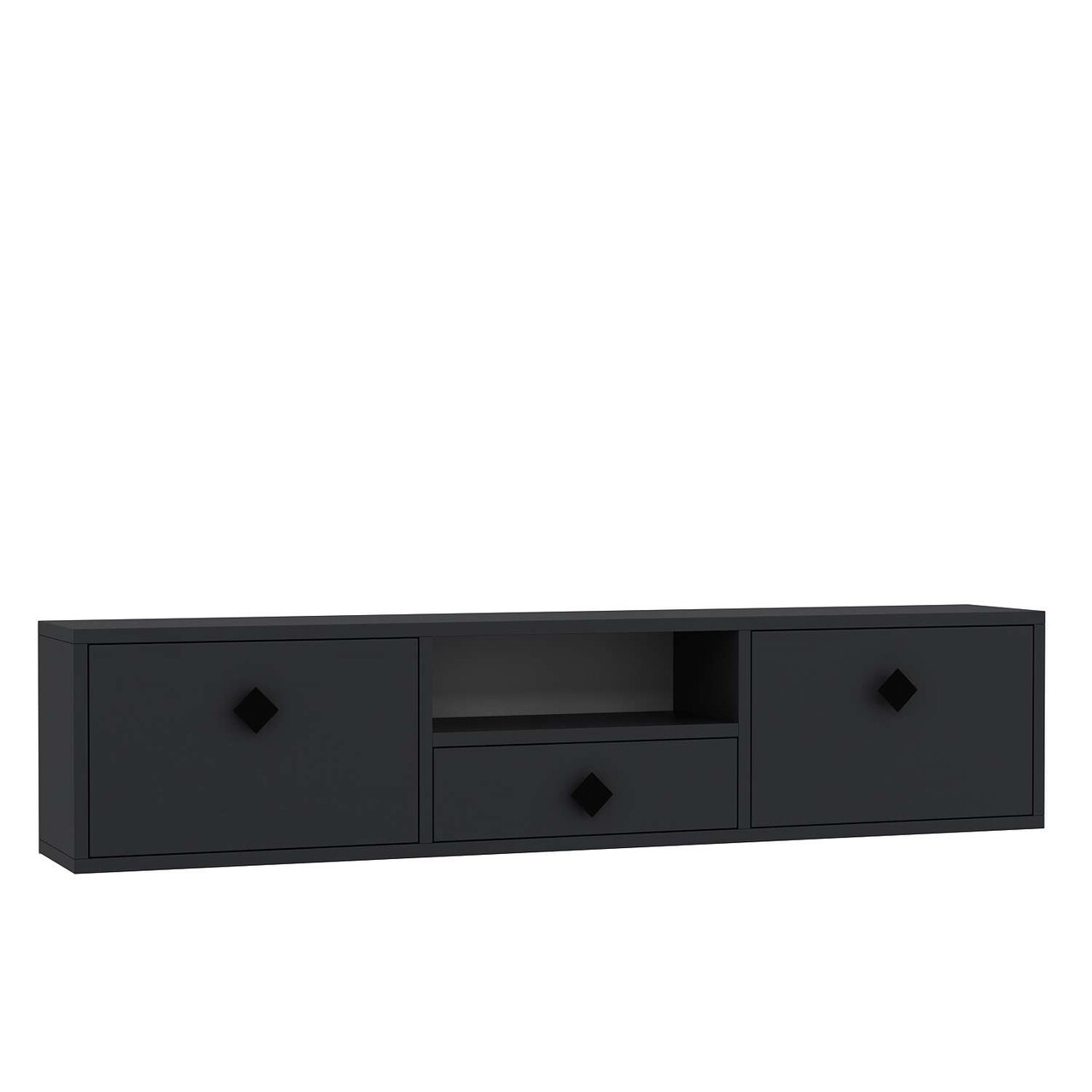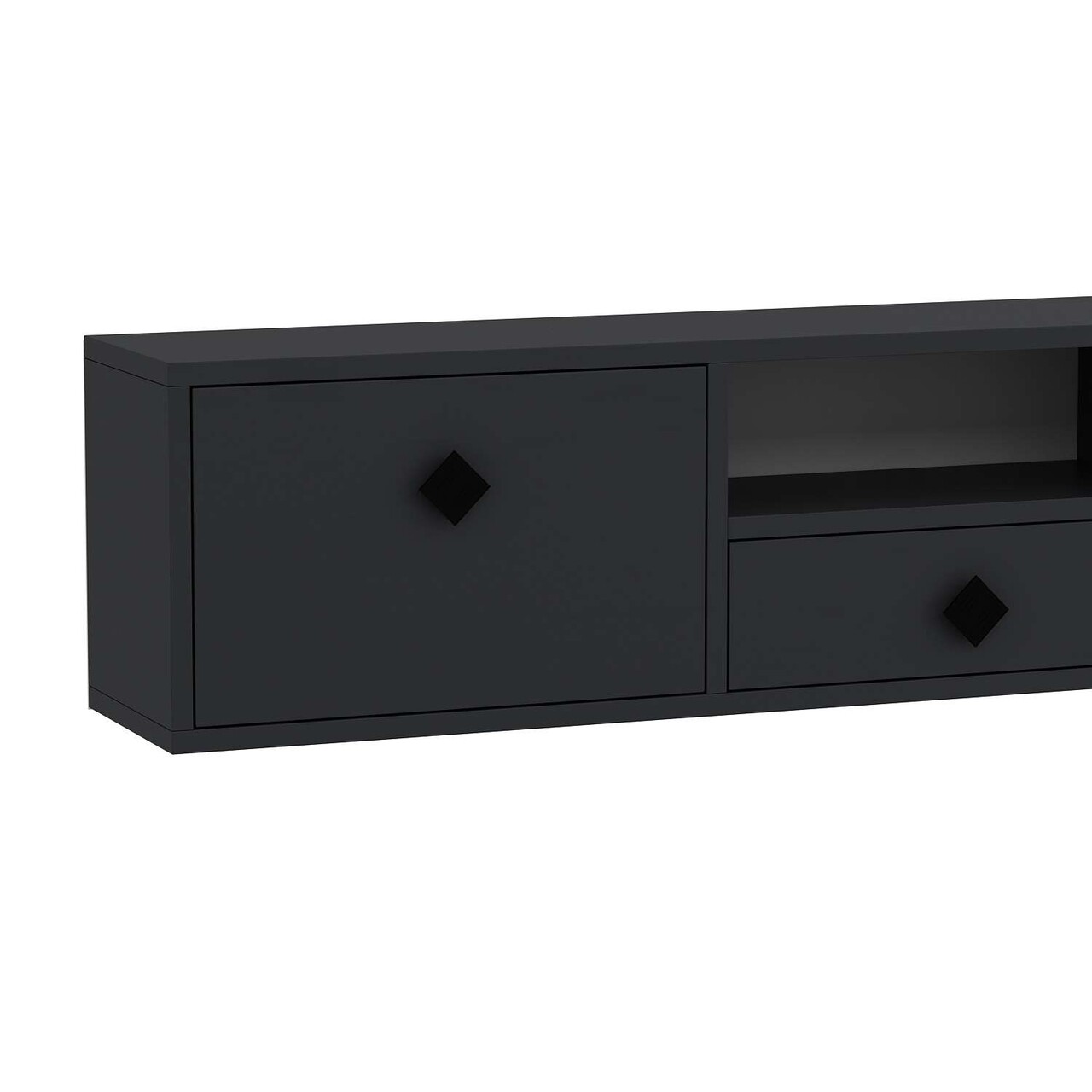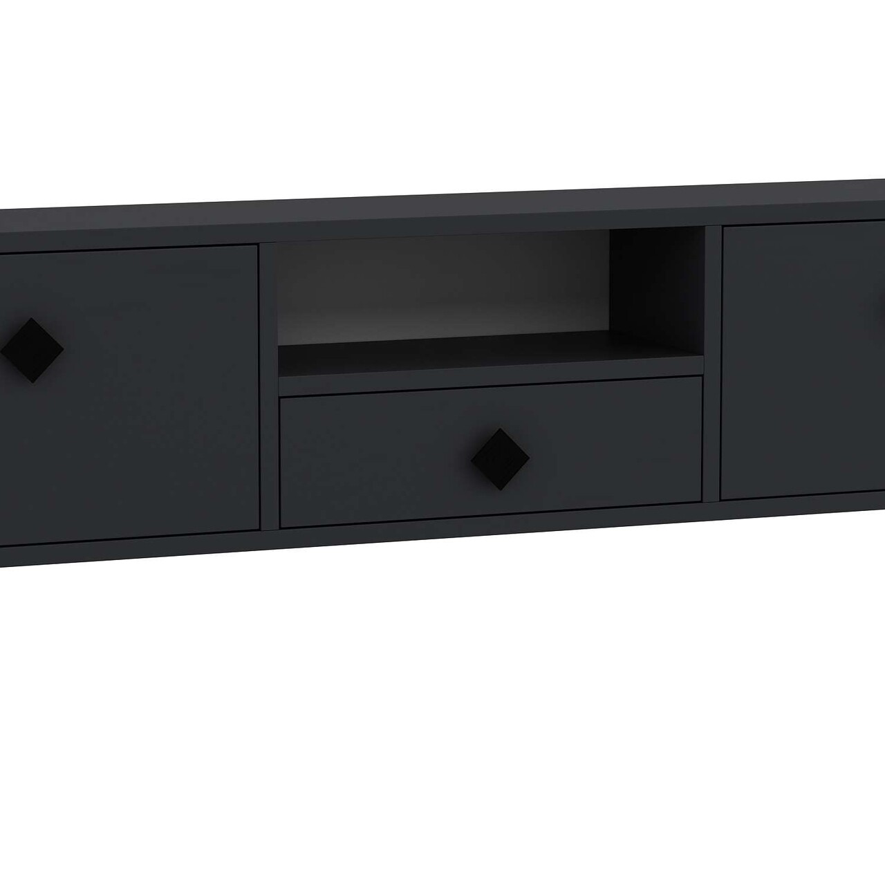 Comoda TV, Hanah Home, 1305-DROP-1, 140x30x30 cm, PAL , Antracit / Negru