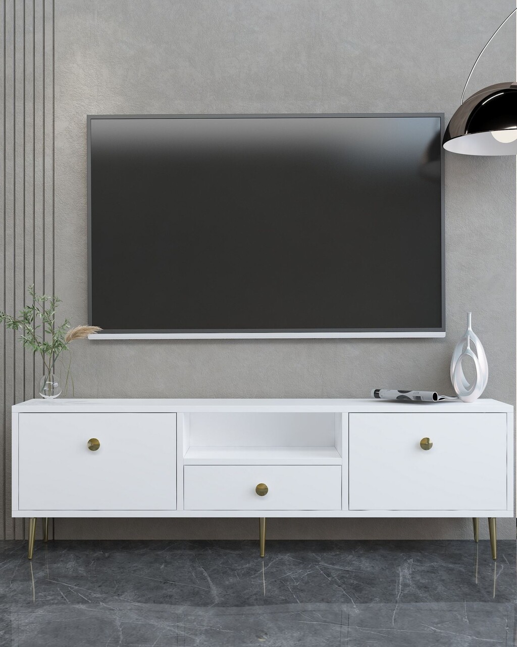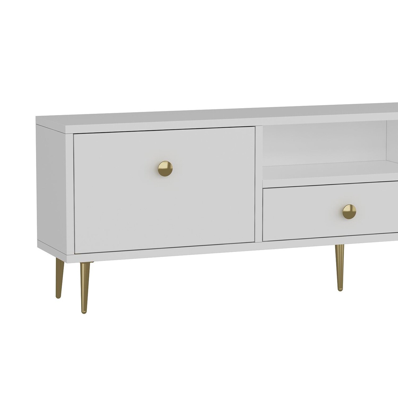 Comoda TV, Hanah Home, 1307-DROP-1, 140x45x30 cm, PAL , Alb/Auriu
