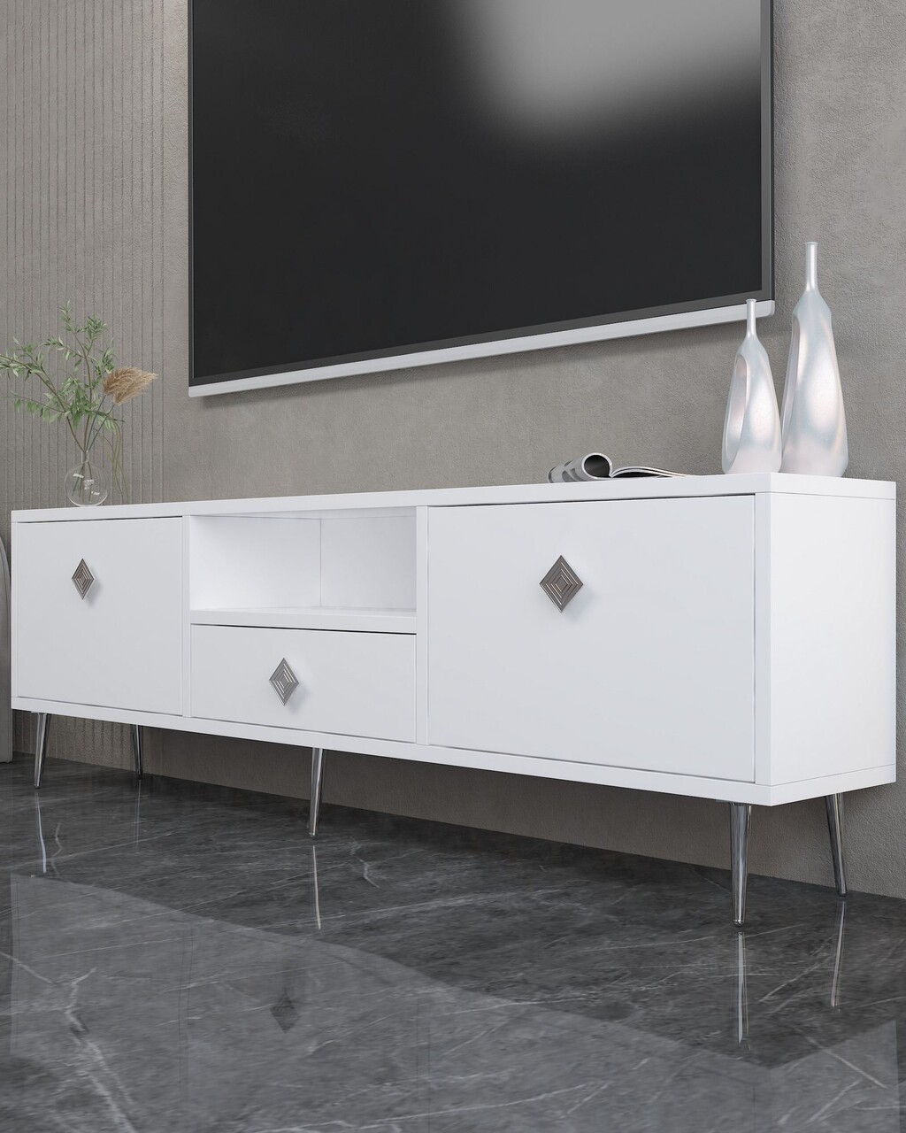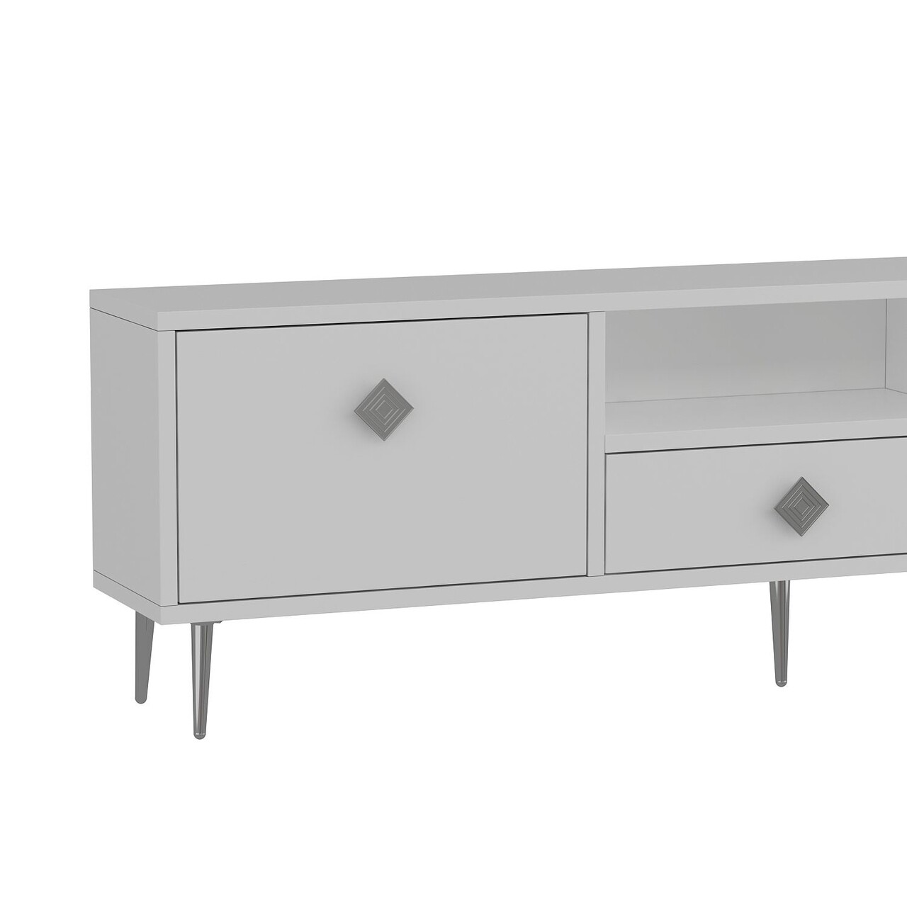 Comoda TV, Hanah Home, 1308-DROP-1, 140x45x30 cm, PAL , Alb / Argintiu