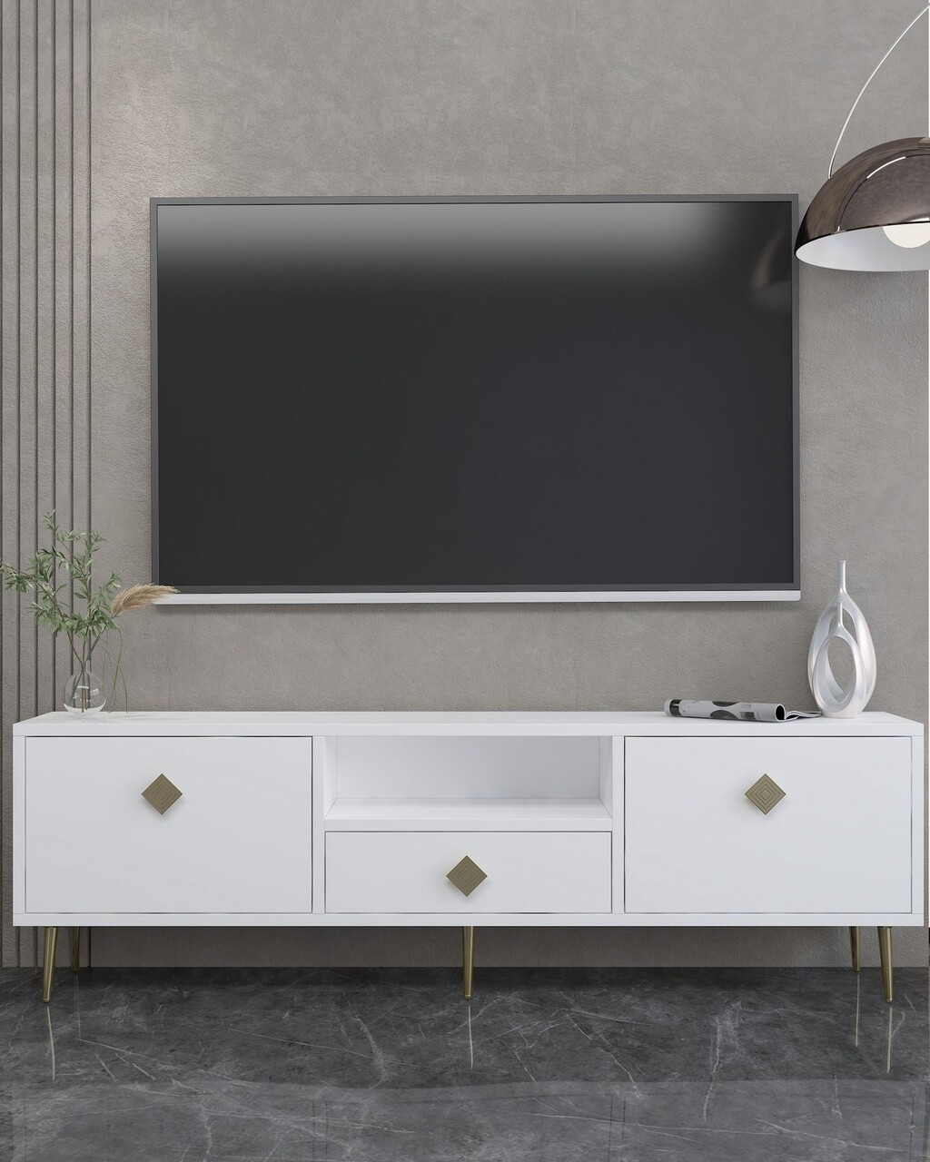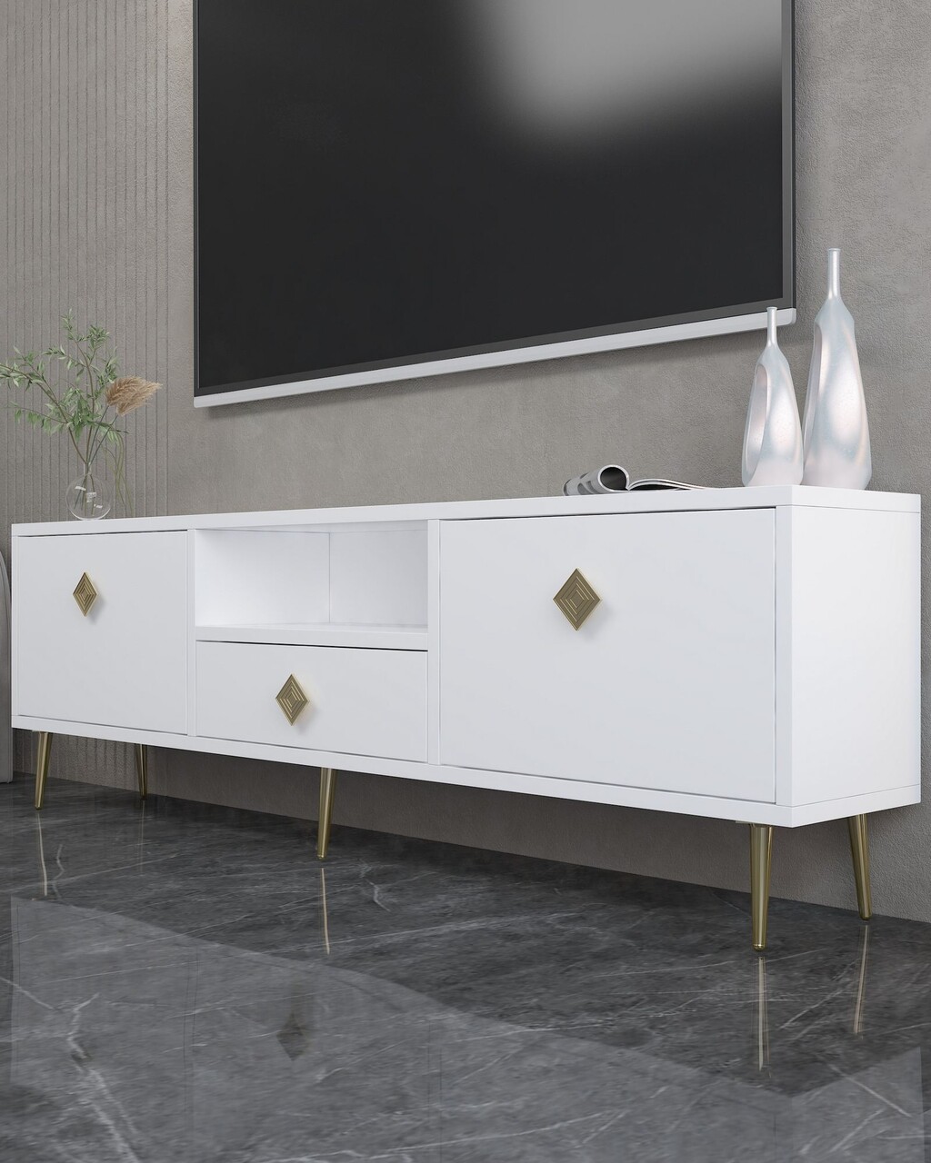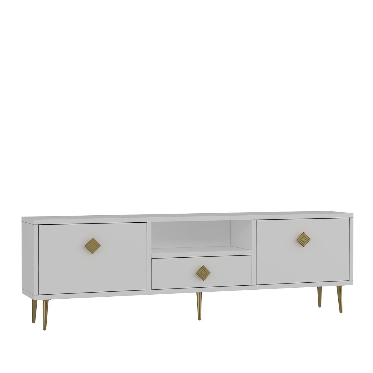 Comoda TV, Hanah Home, 1308-DROP-1, 140x45x30 cm, PAL , Alb/Auriu