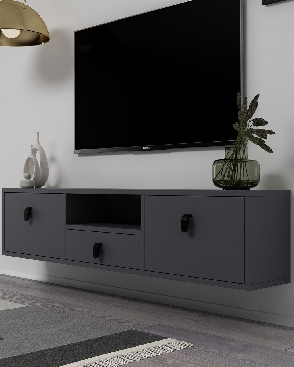 Comoda TV, Hanah Home, 1309-DROP-1, 140x30x30 cm, PAL , Antracit