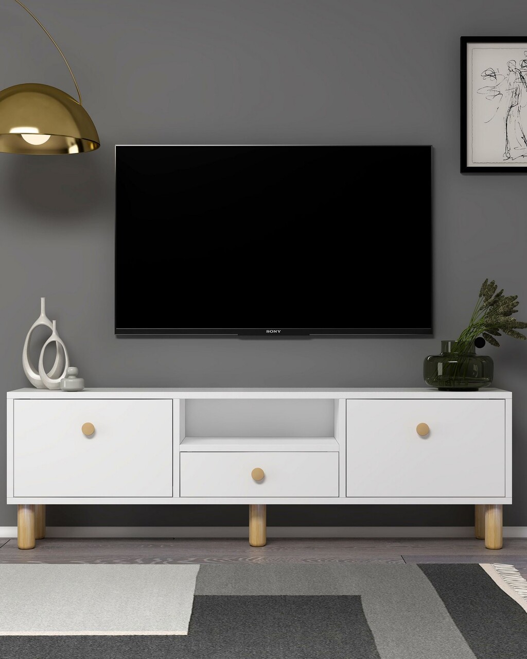 Comoda TV, Hanah Home, 1310-DROP-1, 140x45x30 cm, PAL , Stejar alb / safir