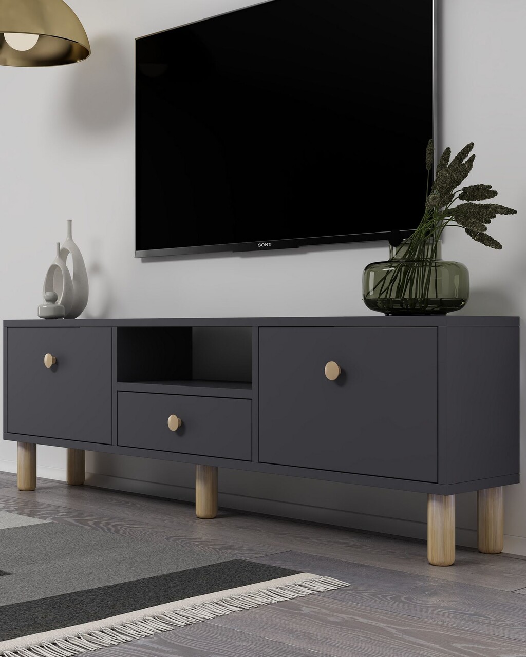 Comoda TV, Hanah Home, 1310-DROP-1, 140x45x30 cm, PAL , Stejar antracit / safir