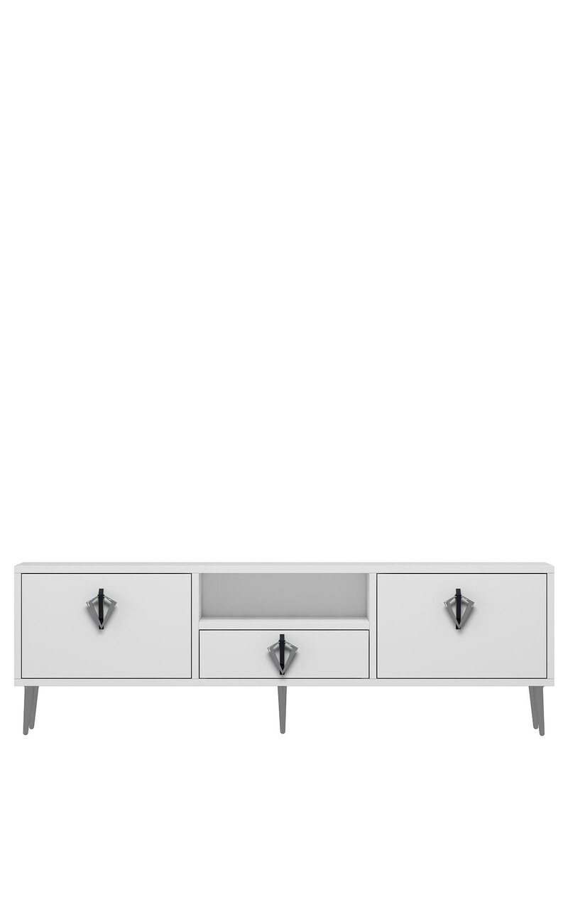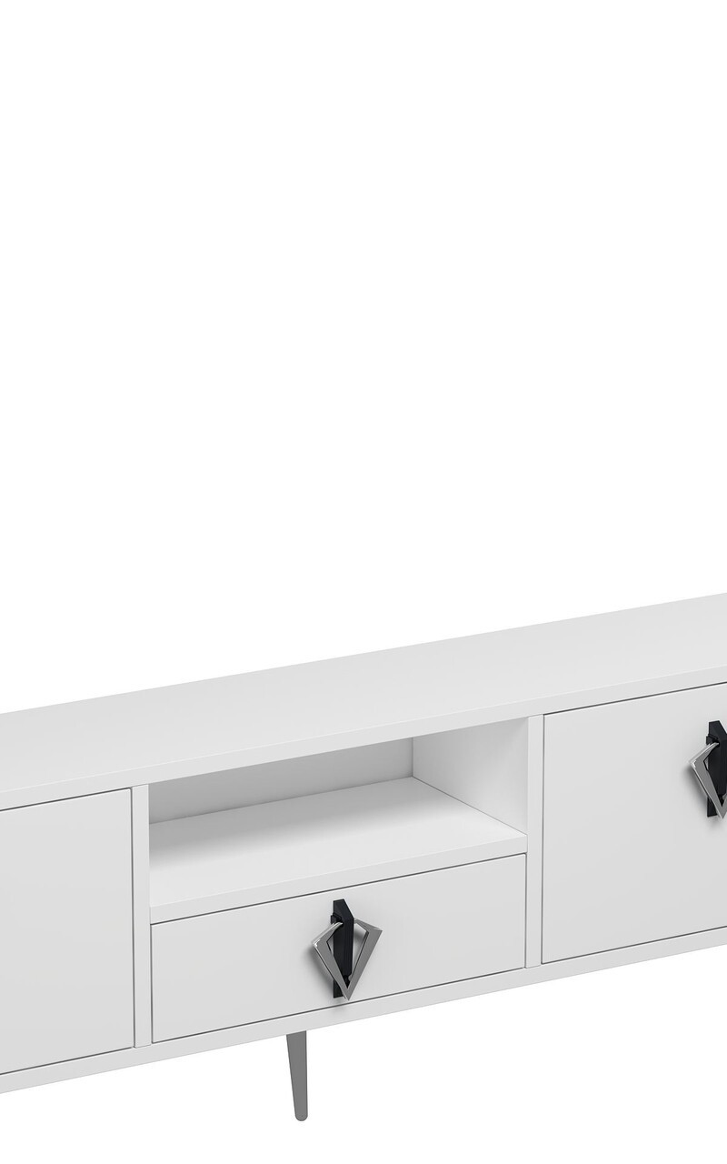 Comoda TV, Hanah Home, 1311-DROP-32, 140x45x30 cm, PAL , White / Black / Silver