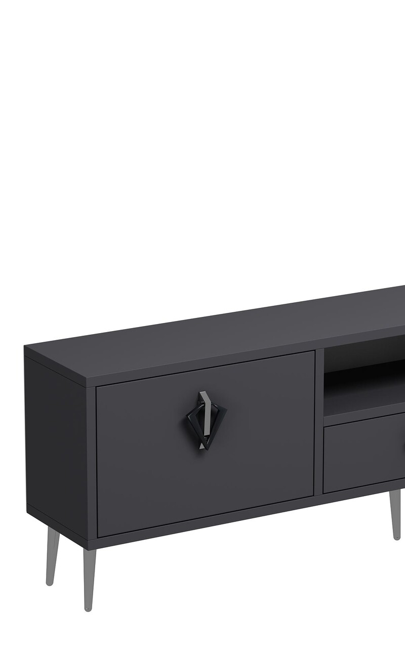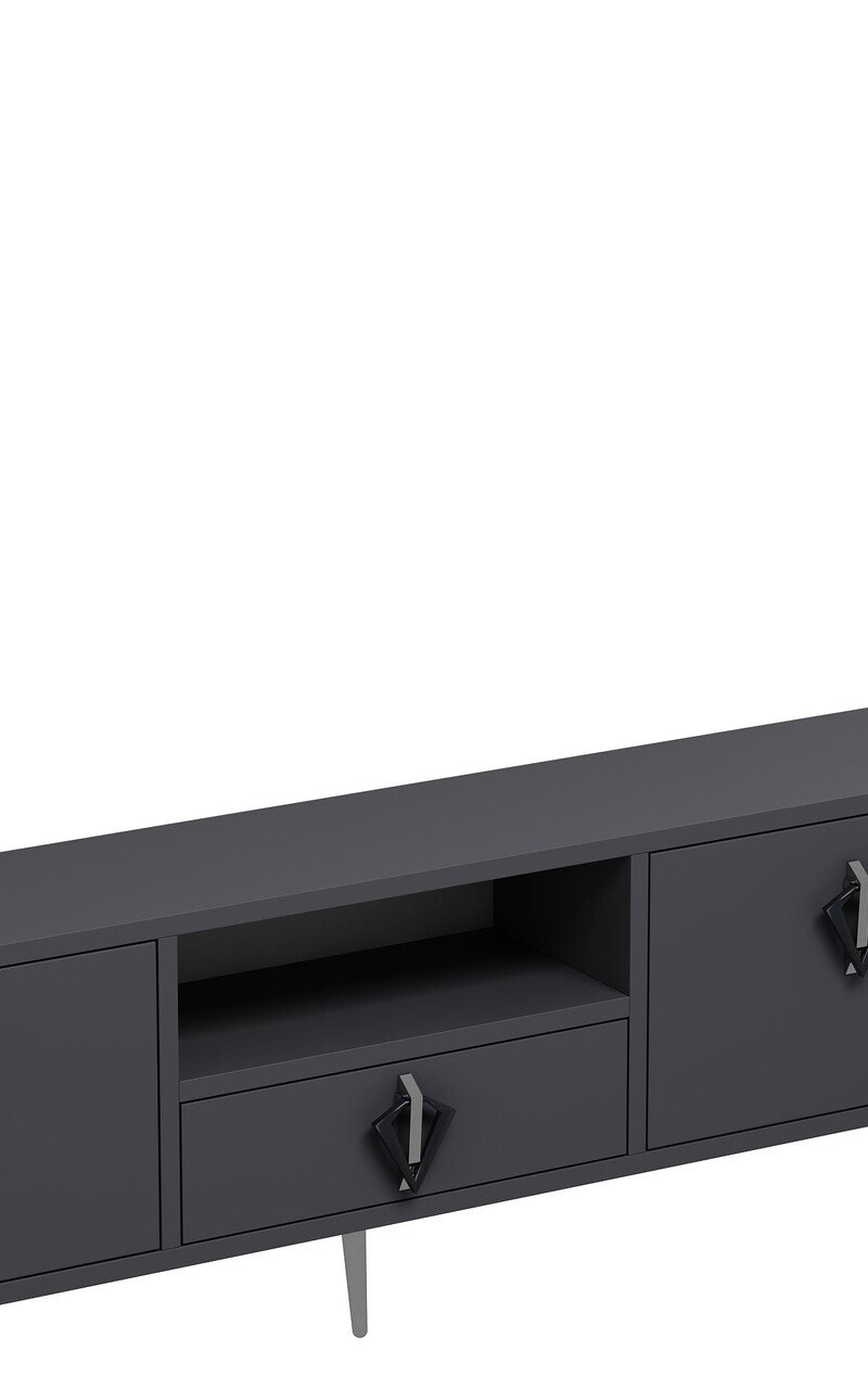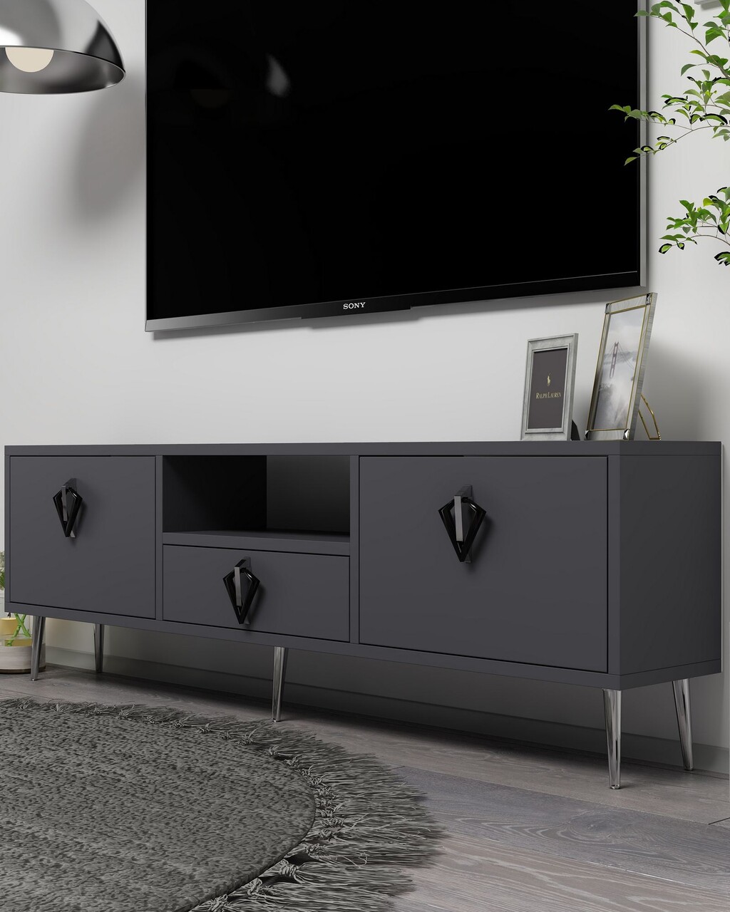 Comoda TV, Hanah Home, 1312-DROP-32, 140x45x30 cm, PAL , Anthracite / Black / Silver