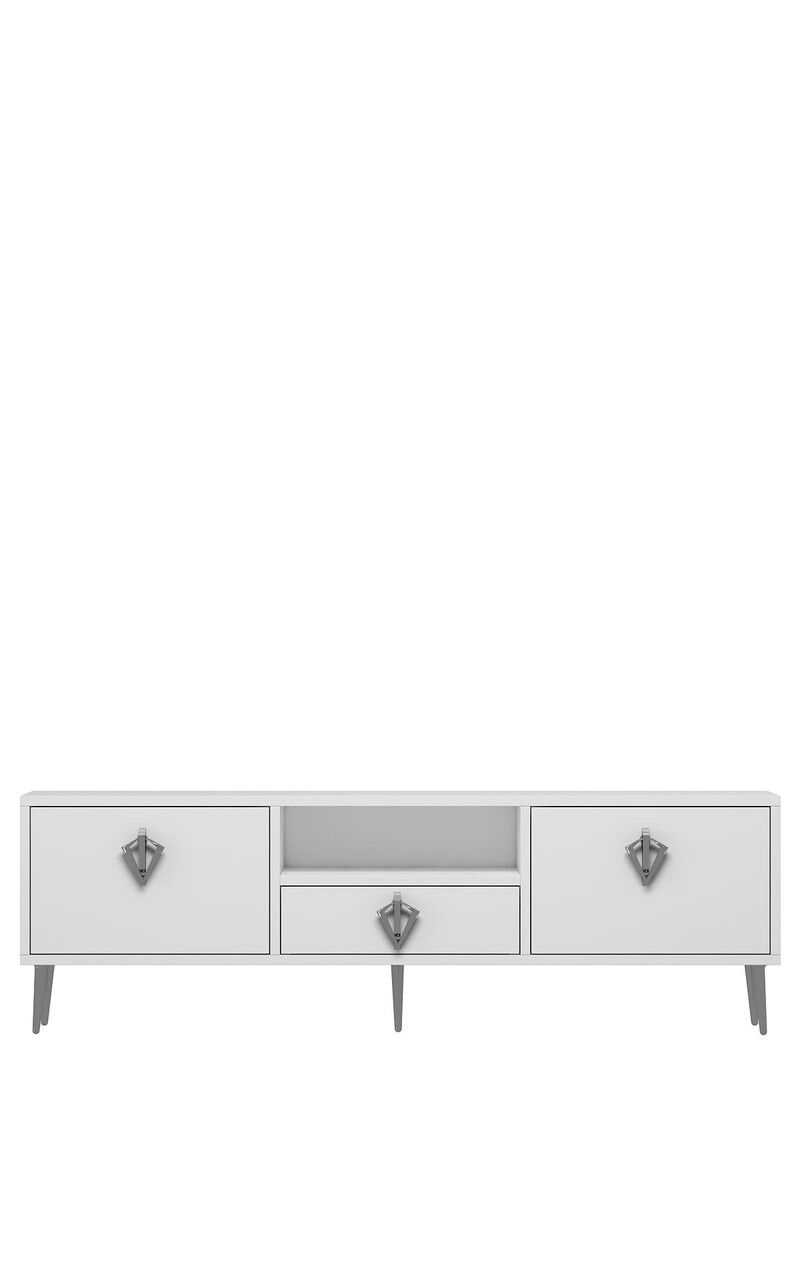 Comoda TV, Hanah Home, 1313-DROP-32, 140x45x30 cm, PAL , Alb / Argintiu