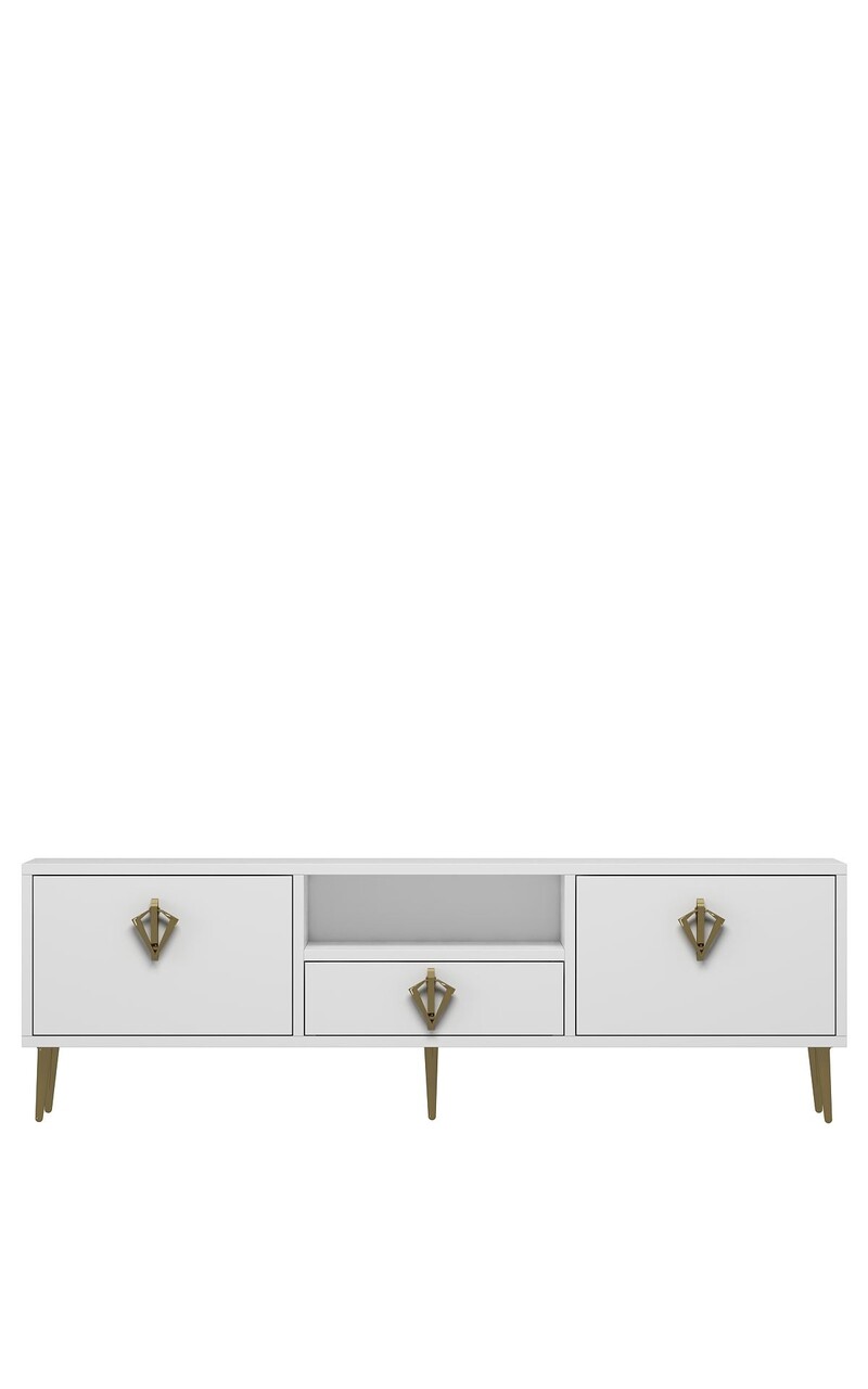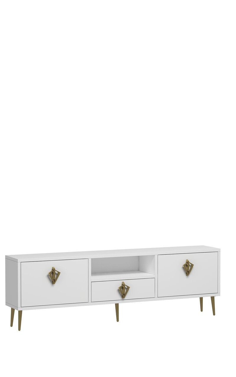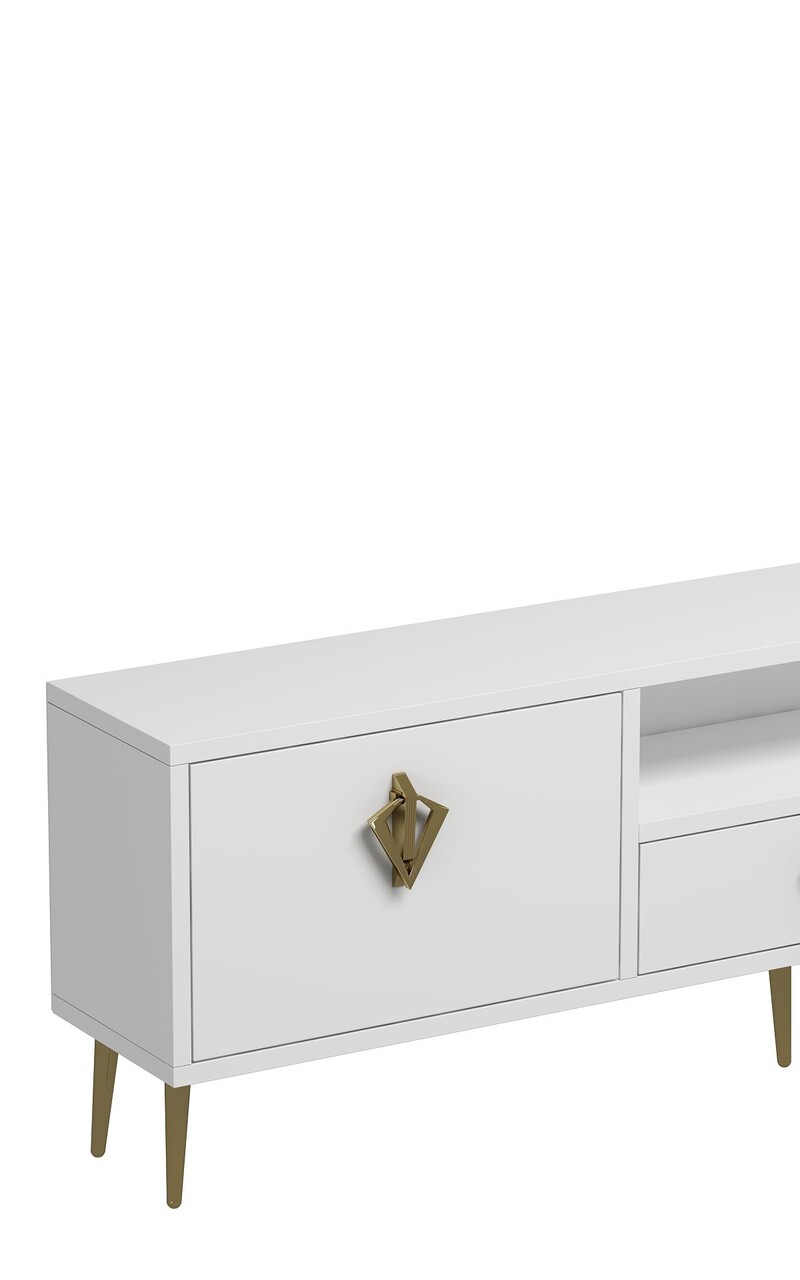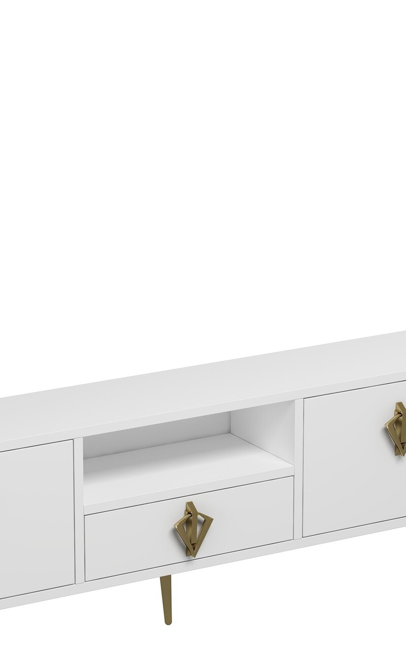 Comoda TV, Hanah Home, 1313-DROP-32, 140x45x30 cm, PAL , Alb/Auriu