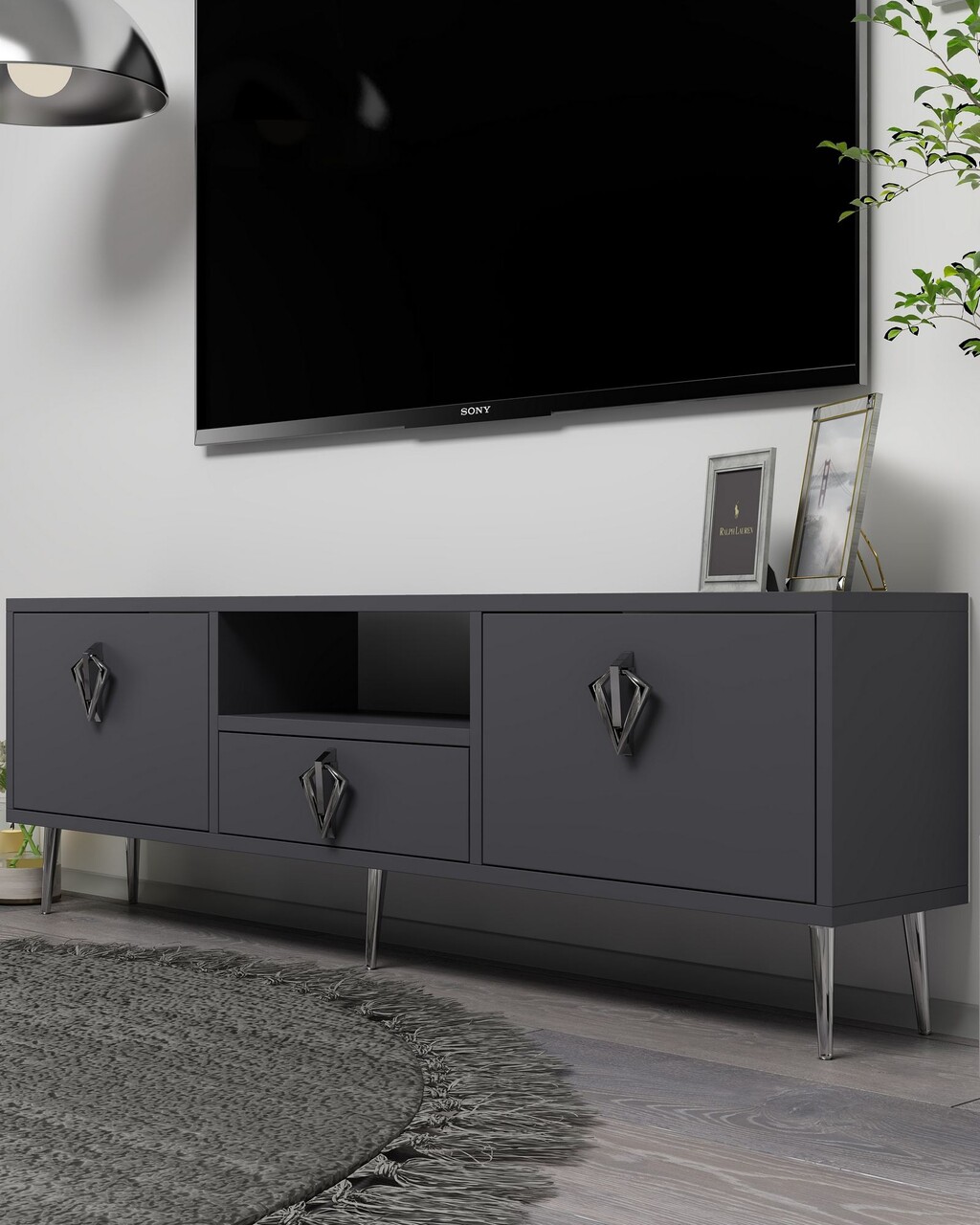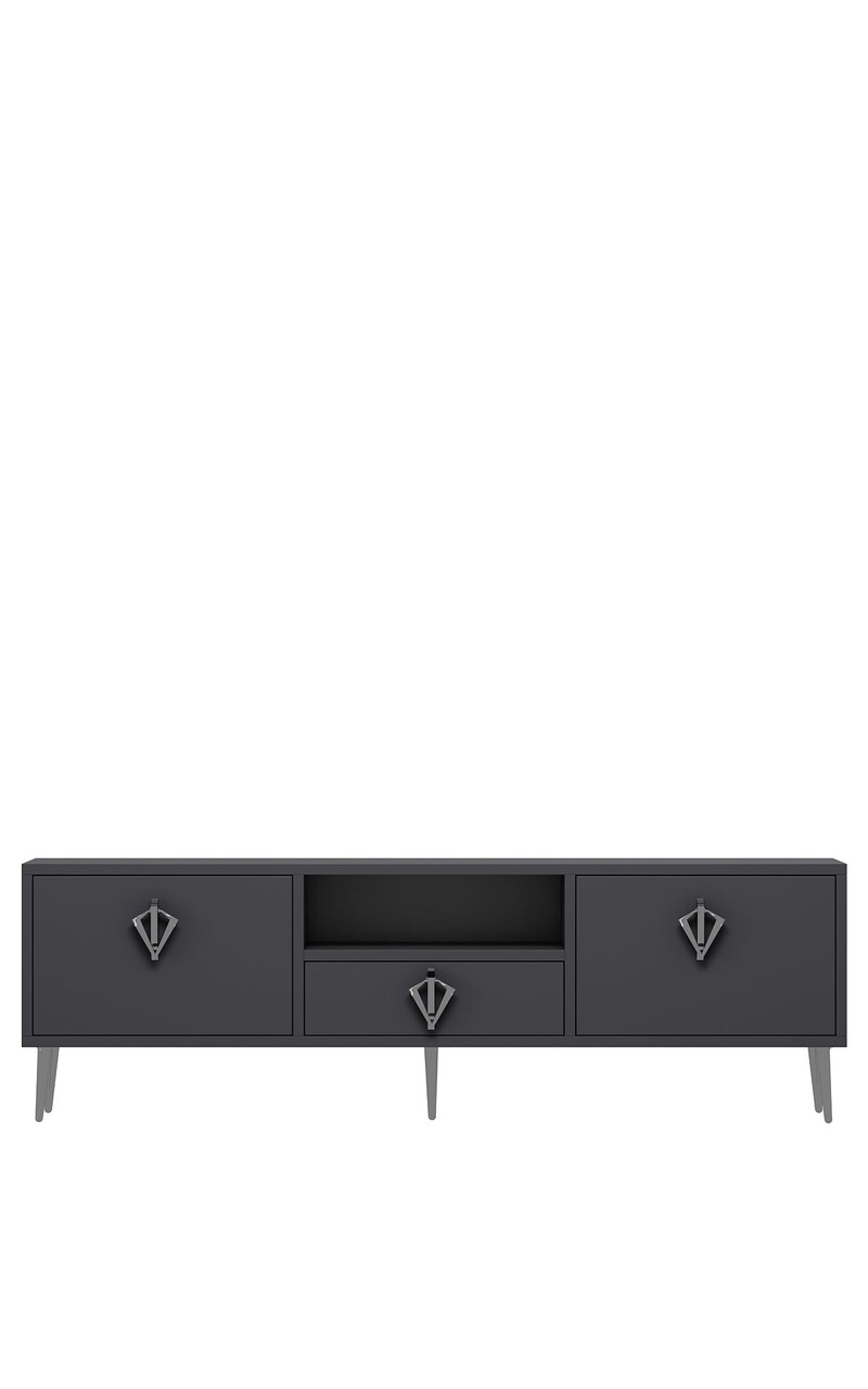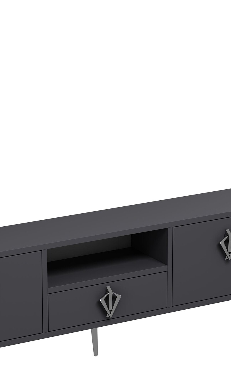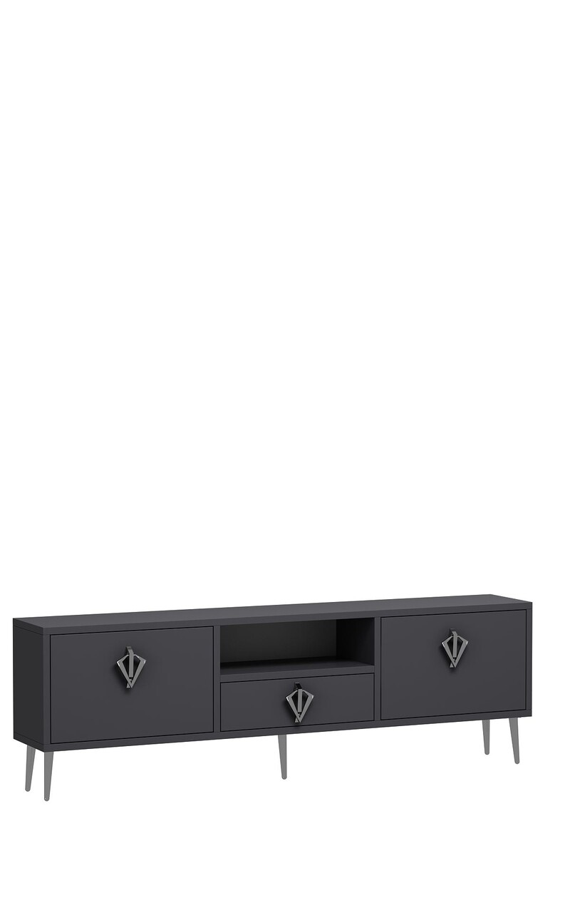 Comoda TV, Hanah Home, 1313-DROP-32, 140x45x30 cm, PAL , Antracit / Argintiu