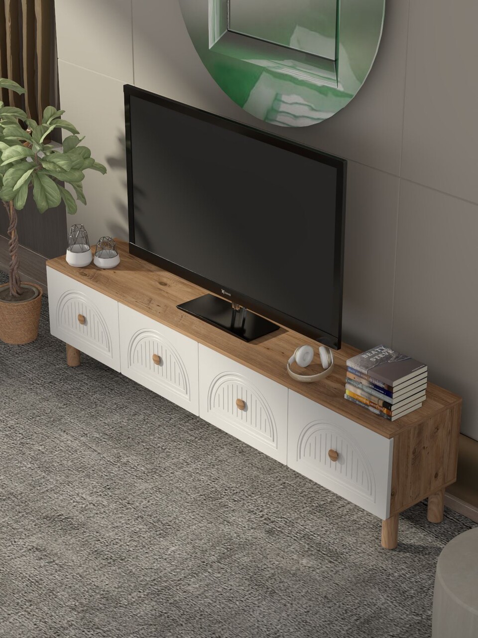 Comoda TV, Hanah Home, Arcera, 180x47x35 cm, PAL, Pin Atlantic / Alb