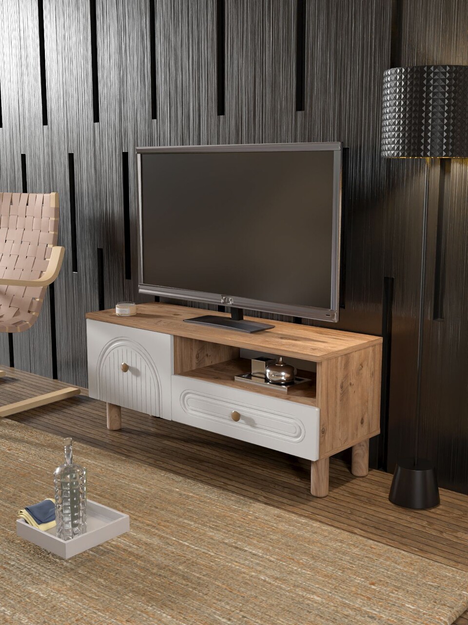 Comoda TV, Hanah Home, Bellora 105, 104x47x35 cm, PAL, Pin Atlantic / Alb