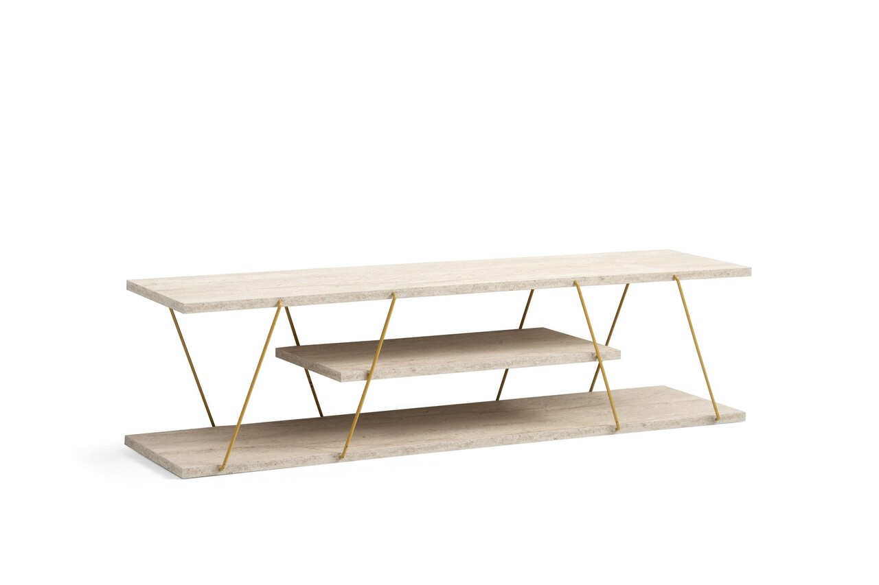 Comoda TV, Hanah Home, Canaz, 120x33x30 cm, Travertin / Auriu