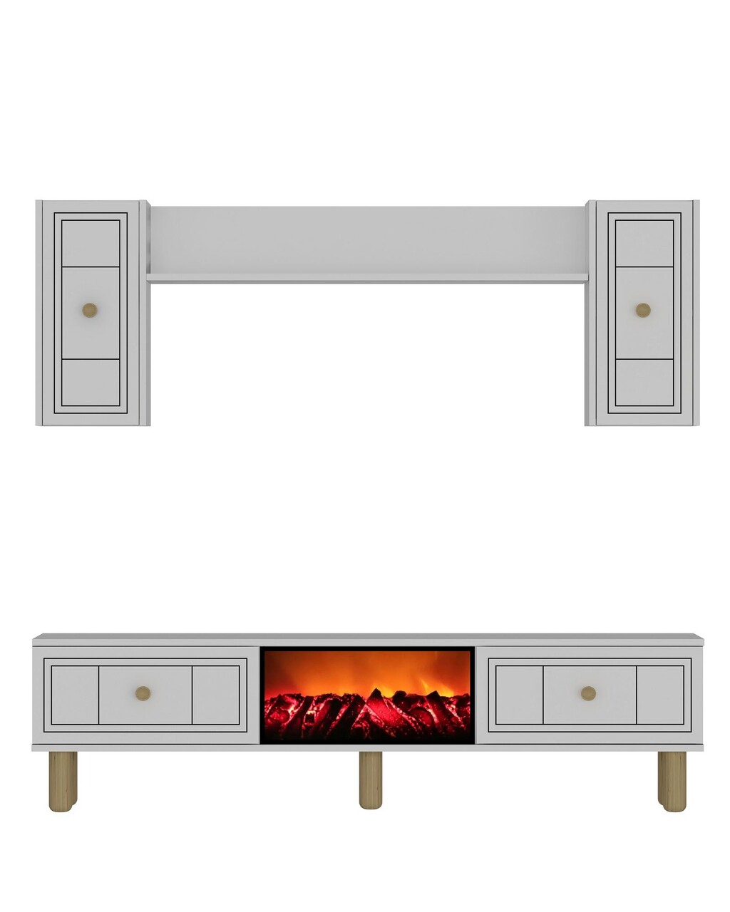 Comoda TV, Hanah Home, Dario Bohem Fireplace, 150x44.6x29.6 cm, PAL , Alb