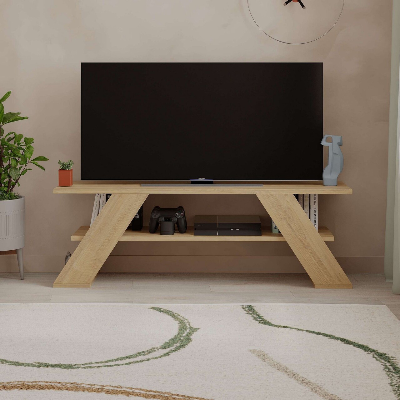 Comoda TV, Hanah Home, Farfalla, 120x40x33.5 cm, PAL, Stejar