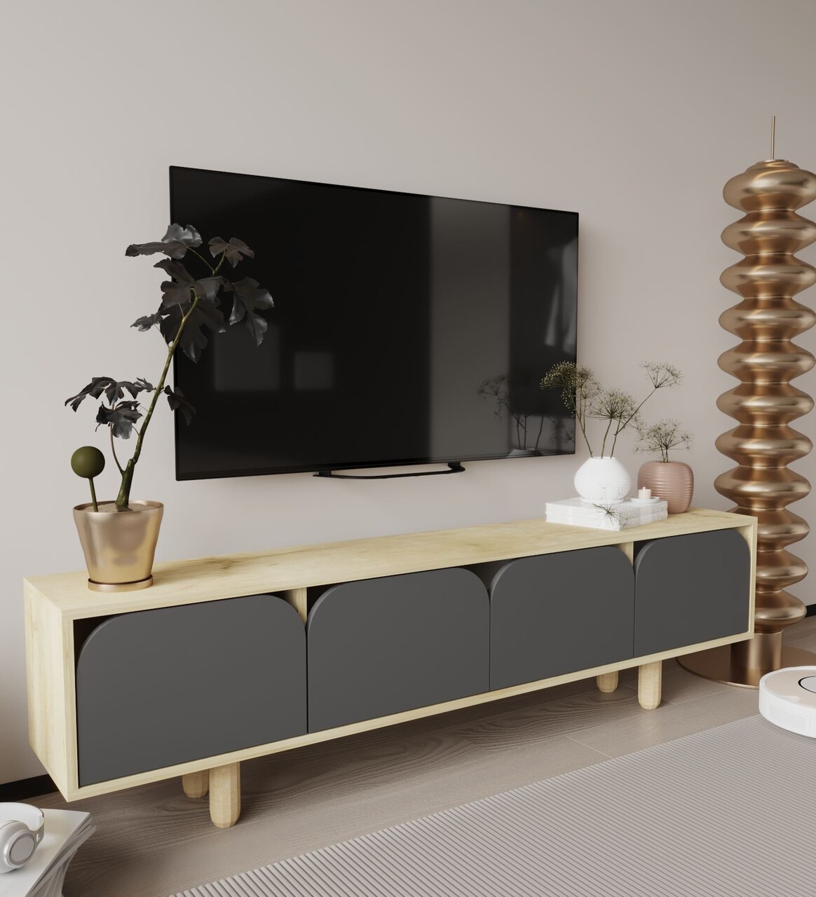 Comoda TV, Hanah Home, Lazio, 180x48x29.8 cm, PAL, Stejar safir / Antracit