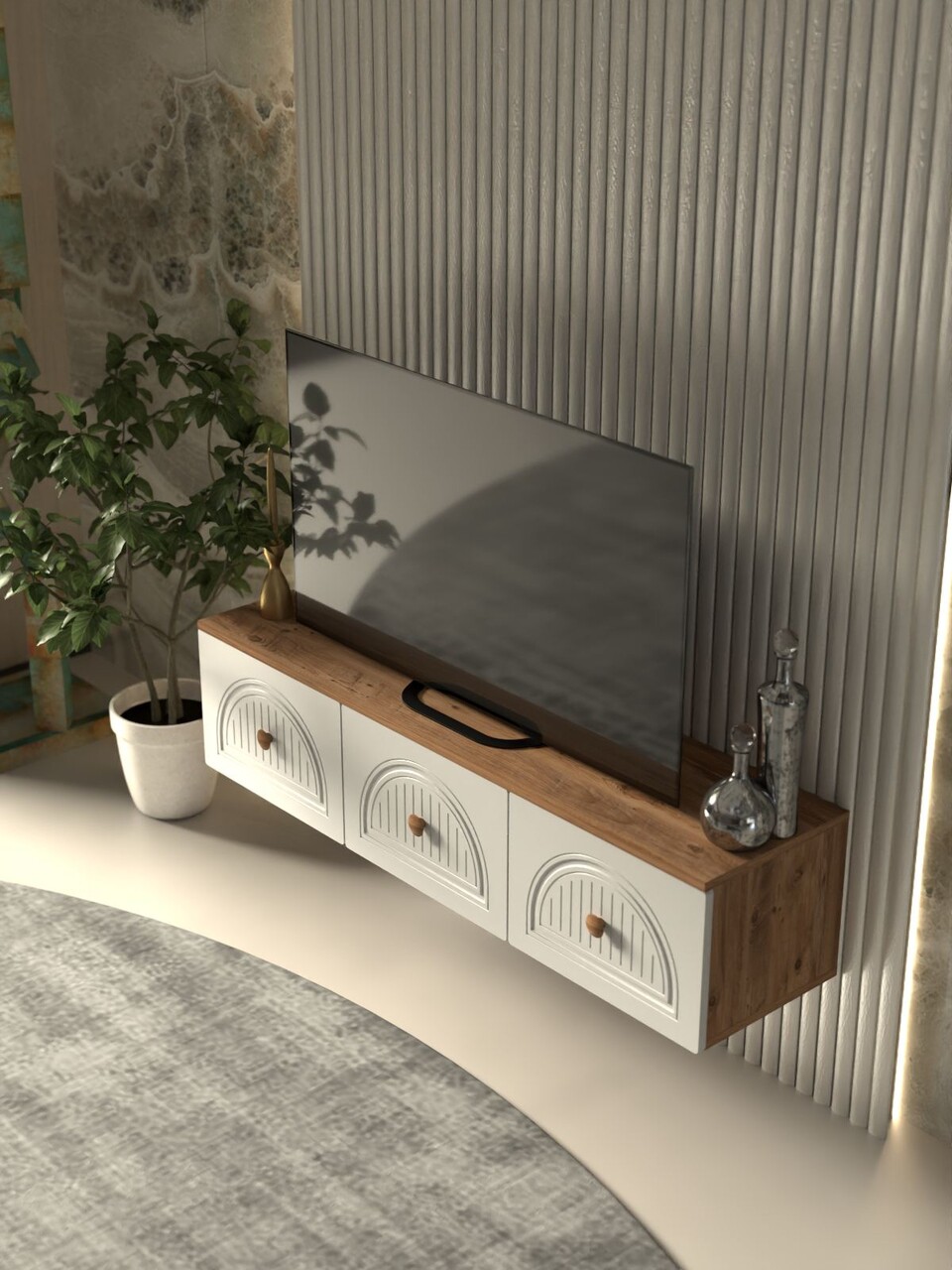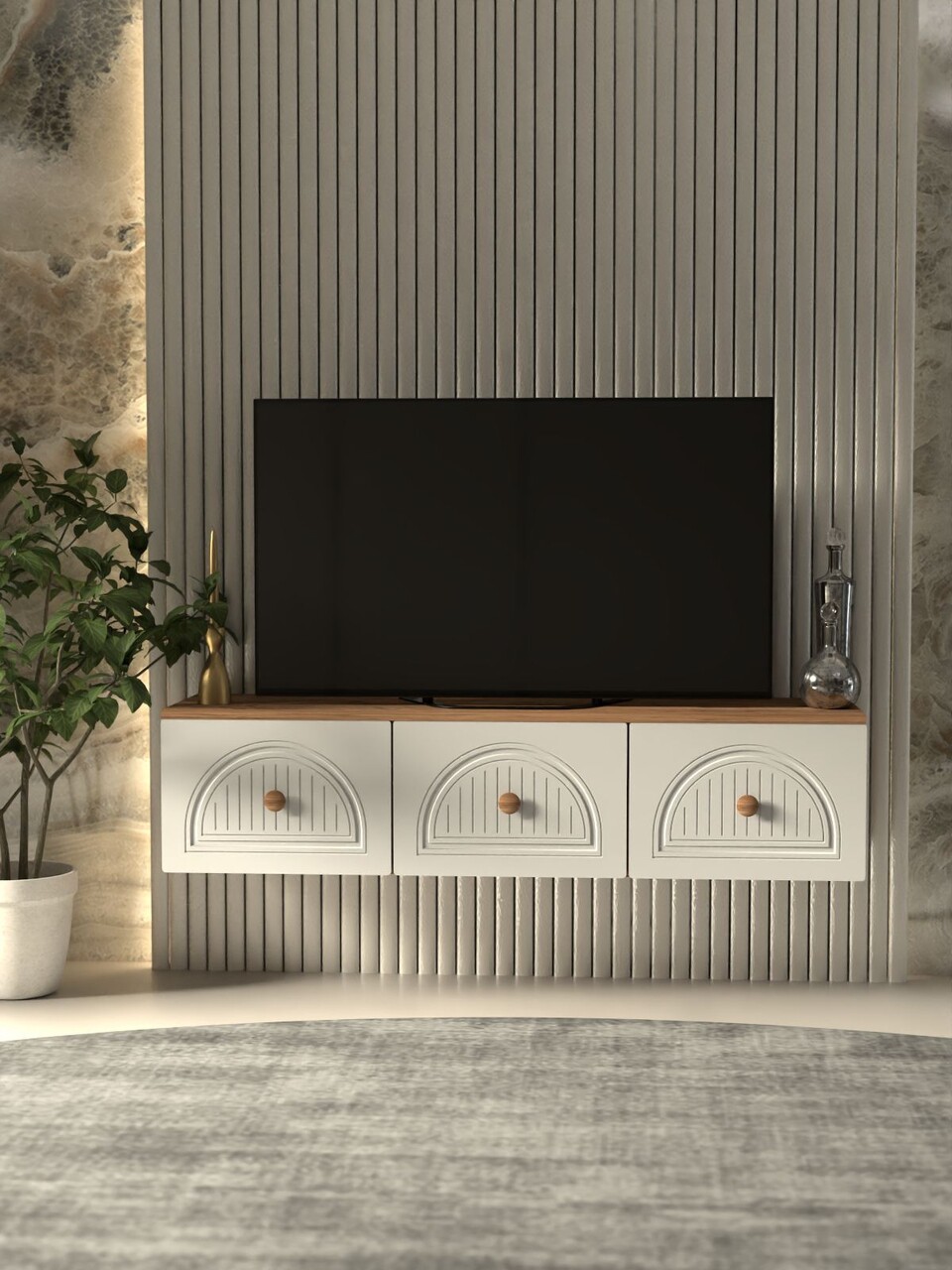Comoda TV, Hanah Home, Modena 135, 135x32x35 cm, PAL, Pin Atlantic / Alb