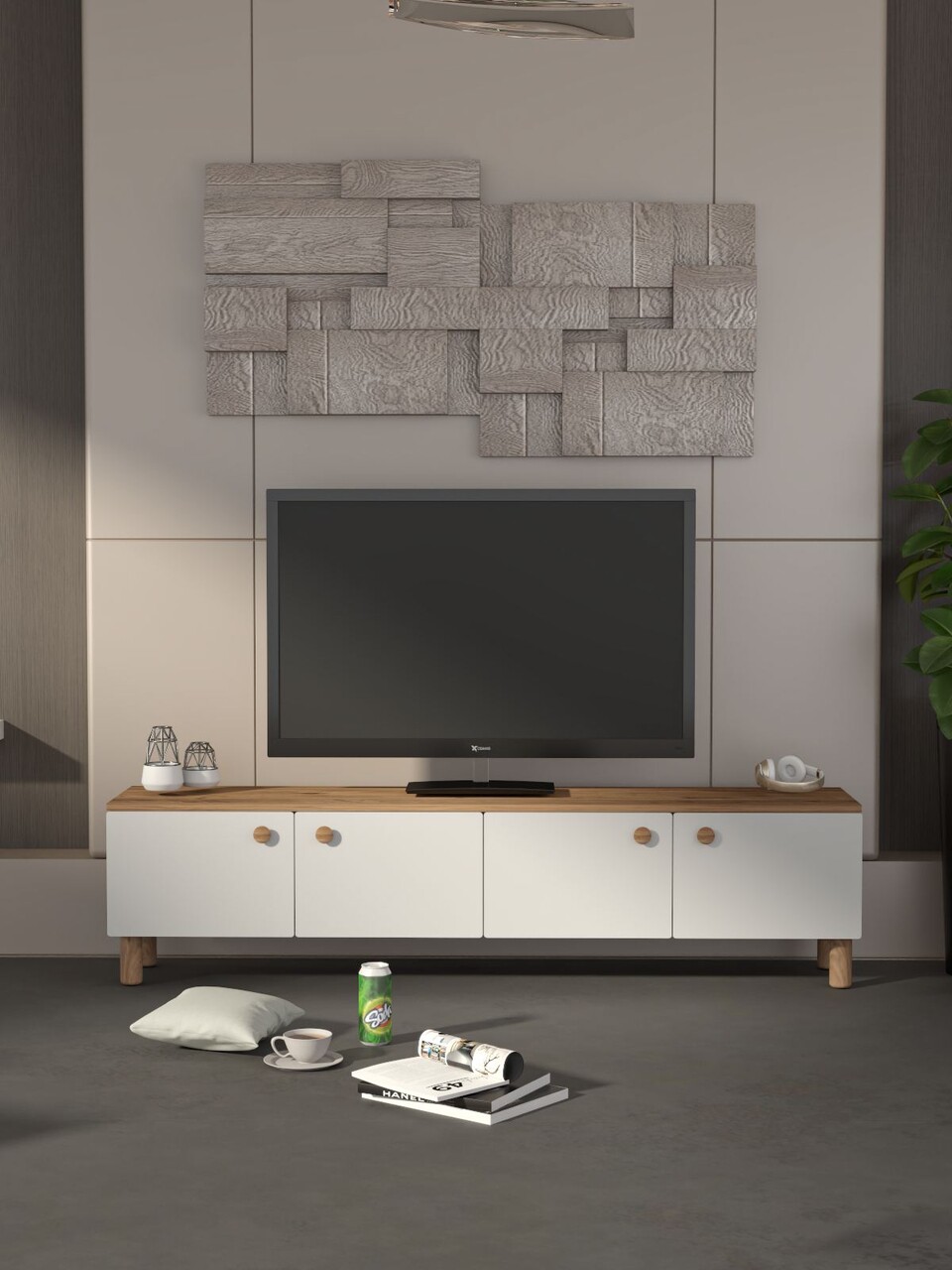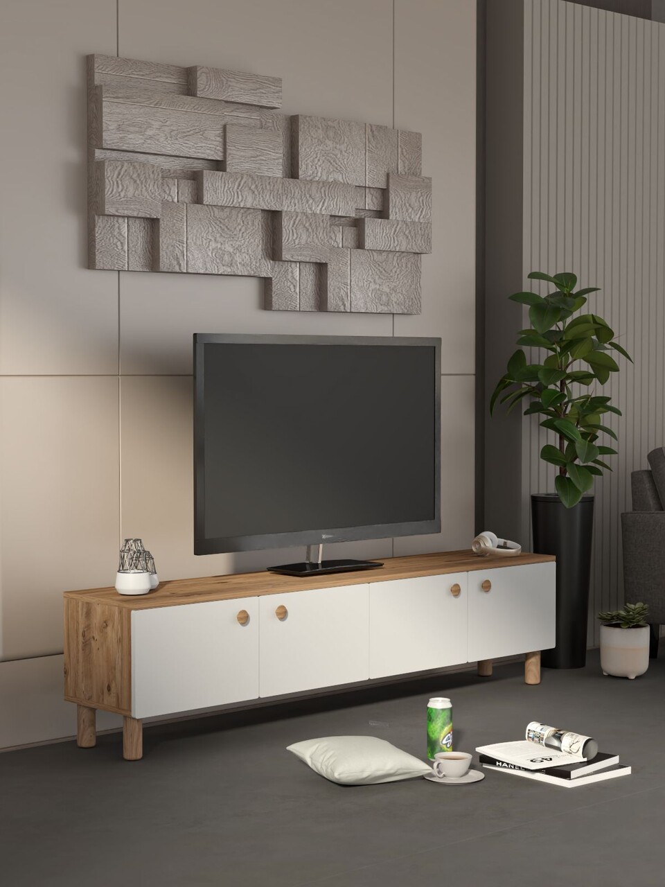 Comoda TV, Hanah Home, Norvella, 180x47x35 cm, PAL, Pin Atlantic / Alb
