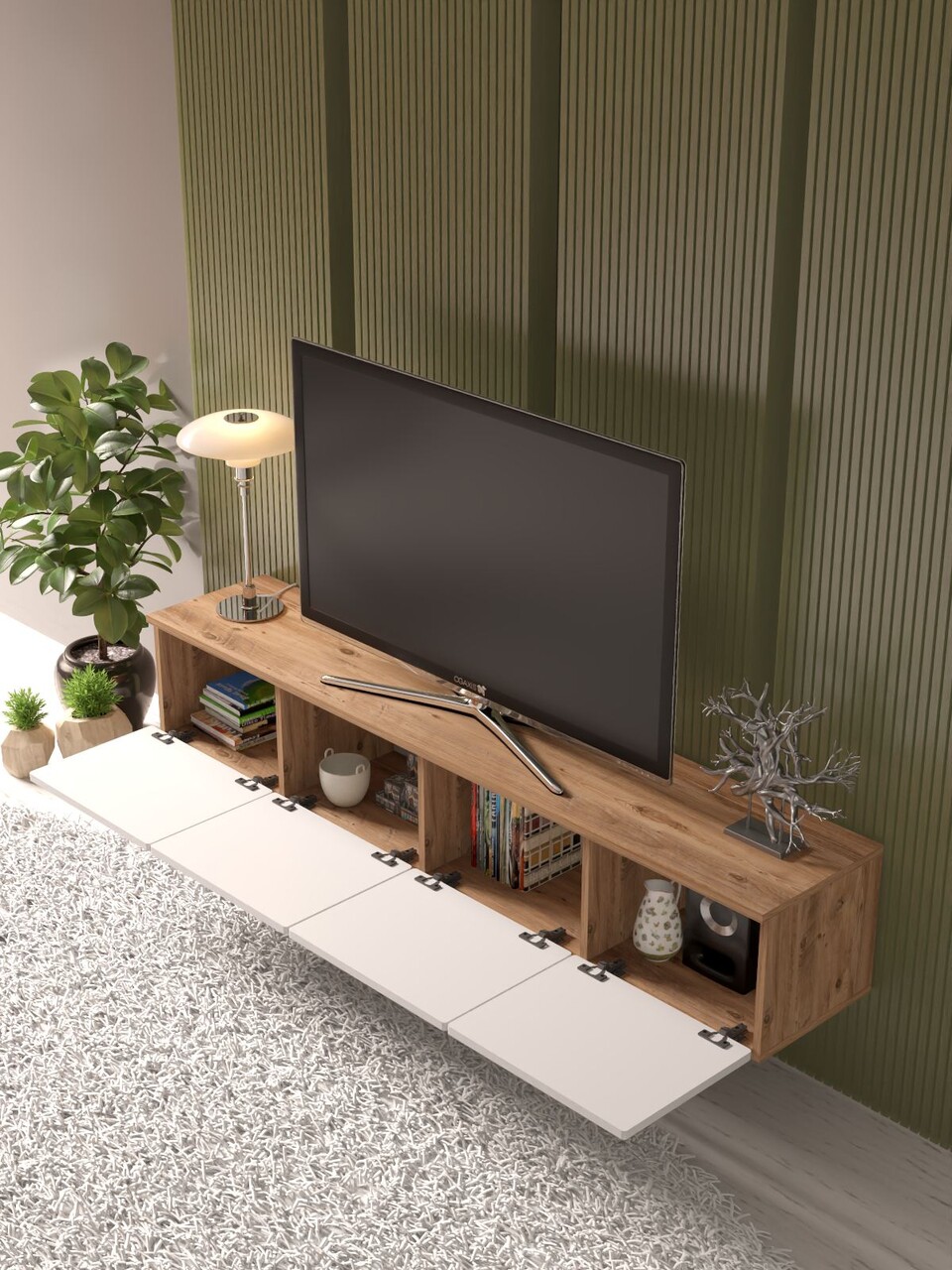 Comoda TV, Hanah Home, Norvia 180, 180x32x35 cm, PAL, Pin Atlantic / Alb