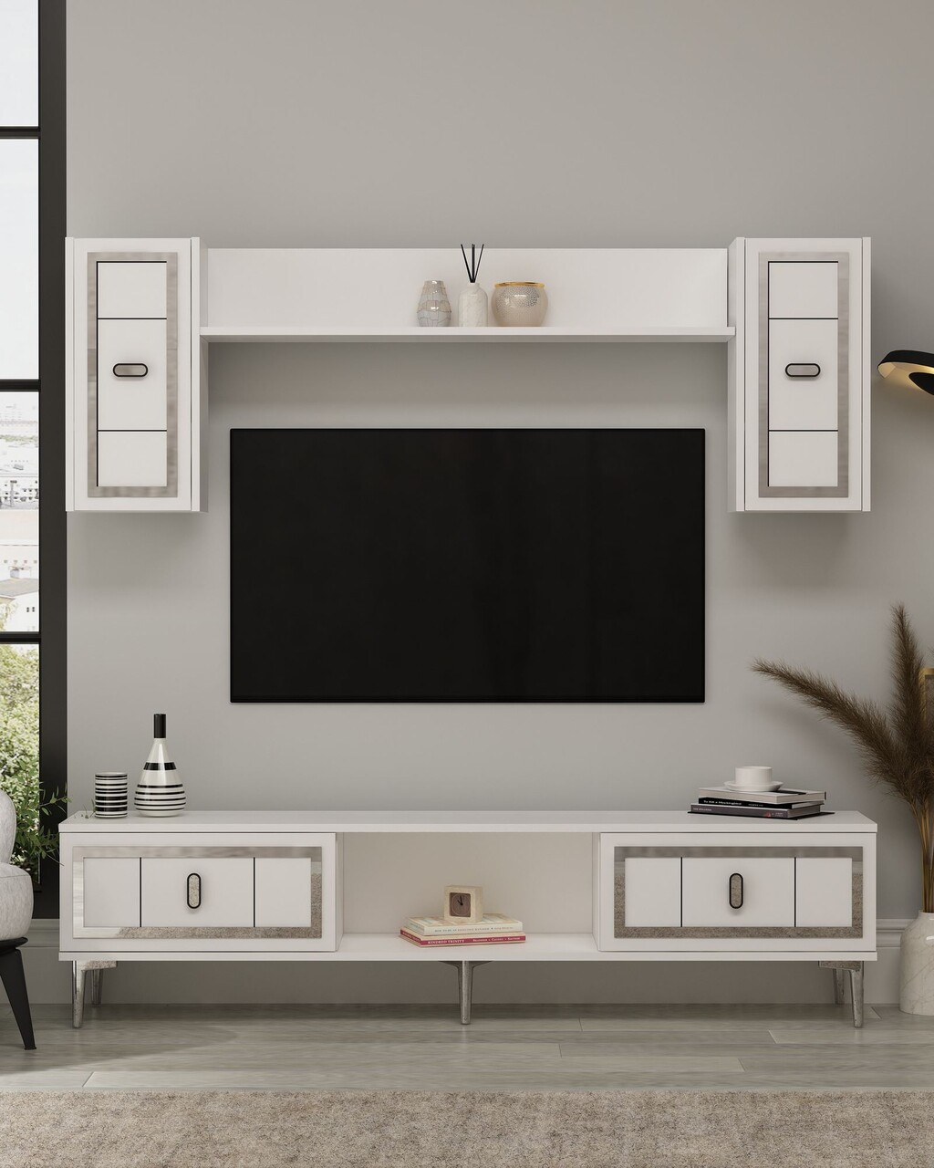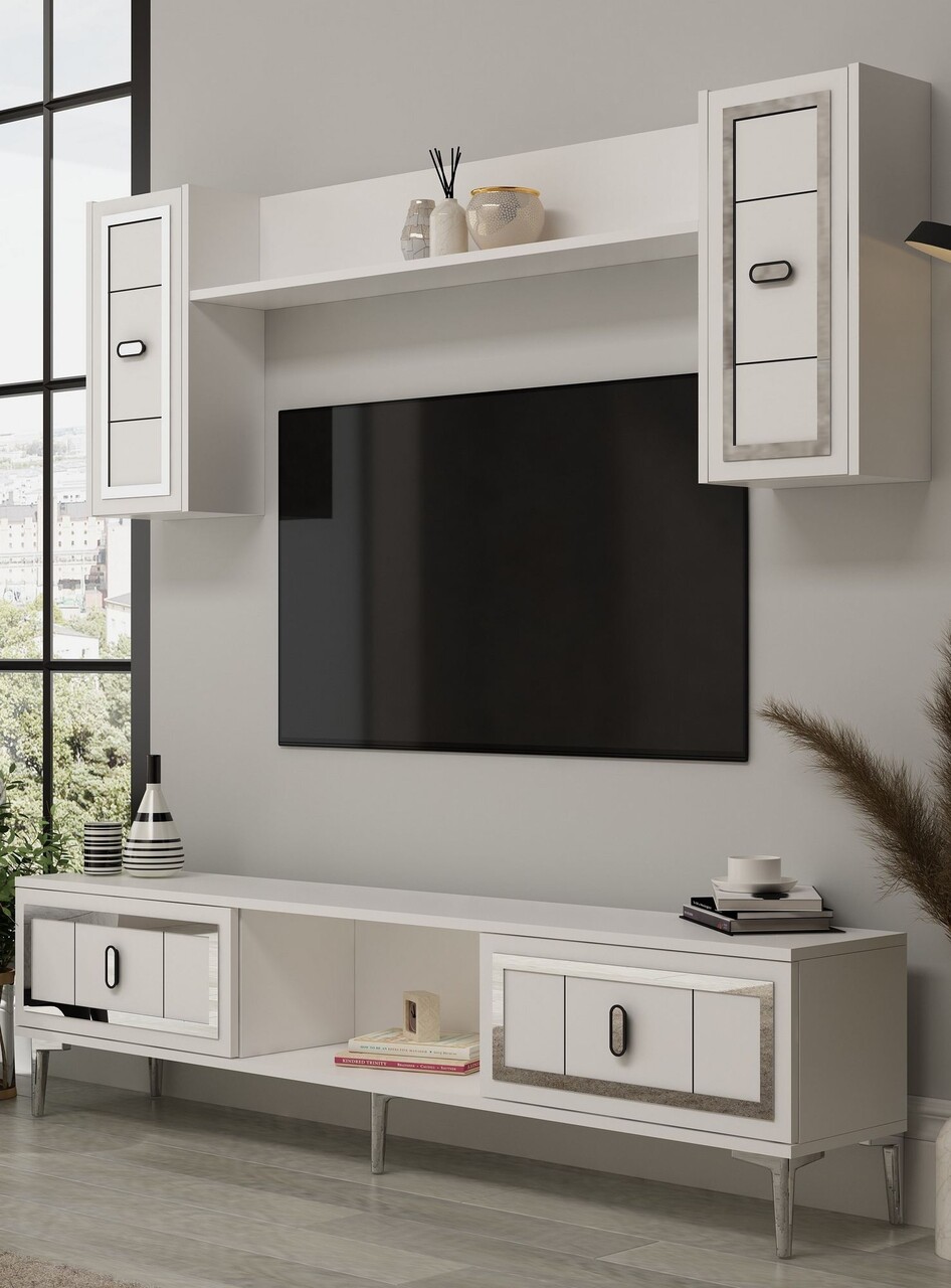 Comoda TV, Hanah Home, Orion, 150x44.6x29.6 cm, PAL , Alb / Argintiu