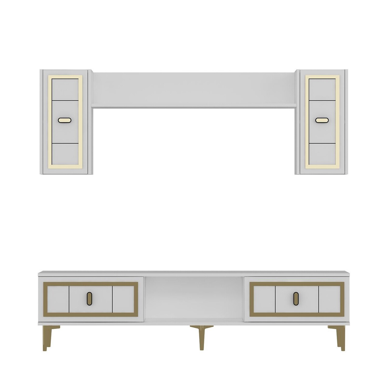 Comoda TV, Hanah Home, Orion, 150x44.6x29.6 cm, PAL , Alb/Auriu