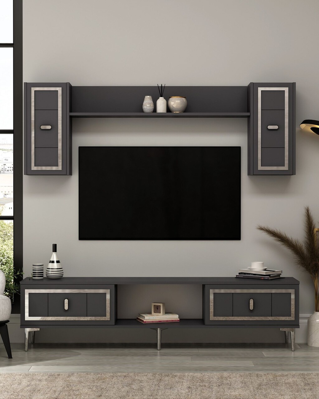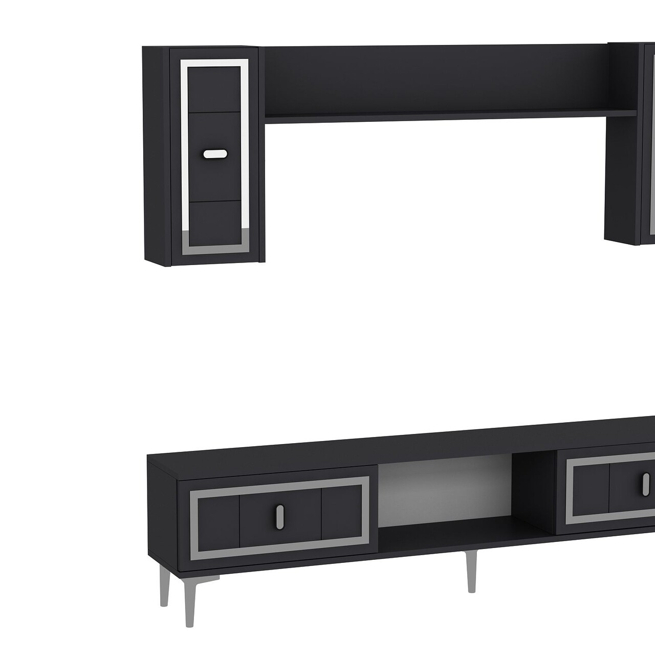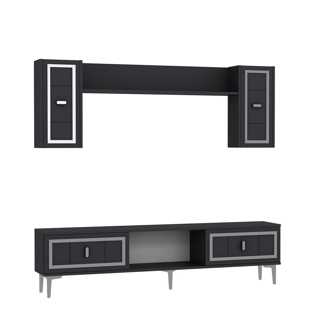 Comoda TV, Hanah Home, Orion, 150x44.6x29.6 cm, PAL , Antracit / Argintiu
