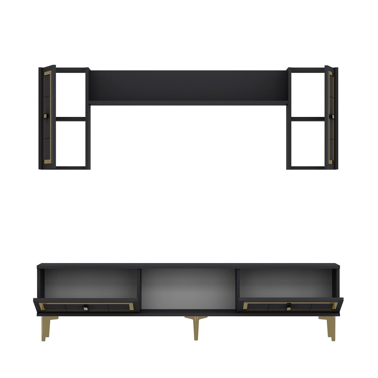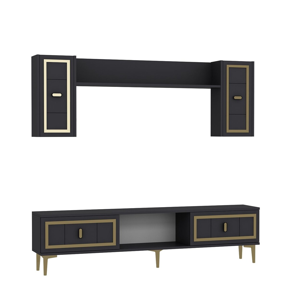 Comoda TV, Hanah Home, Orion, 150x44.6x29.6 cm, PAL , Antracit / Aur