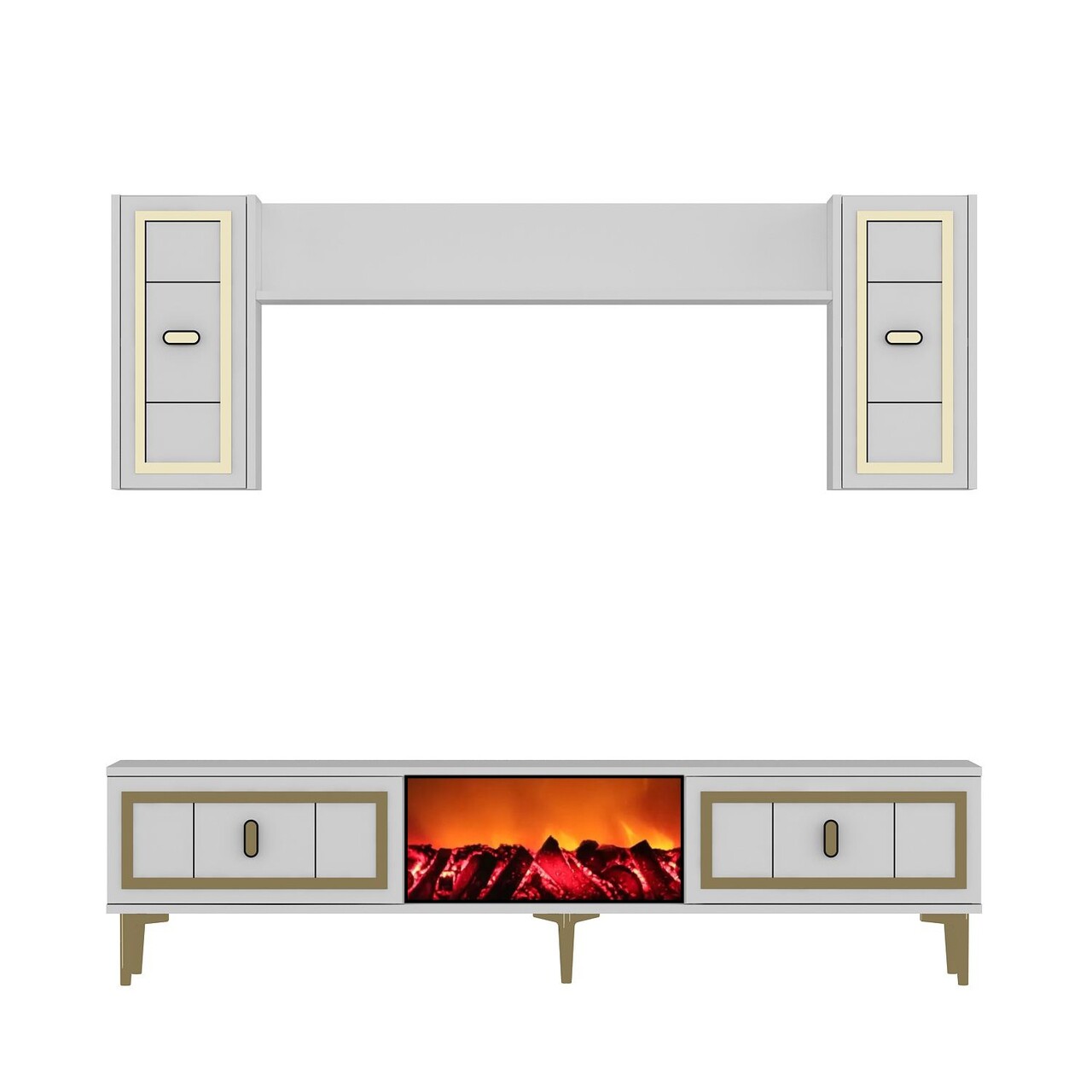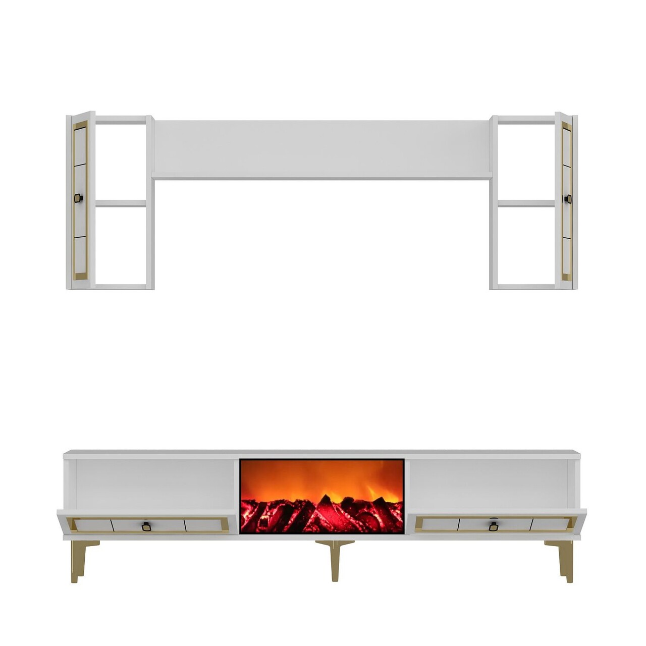 Comoda TV, Hanah Home, Orion Fireplace, 150x44.6x29.6 cm, PAL , Alb/Auriu