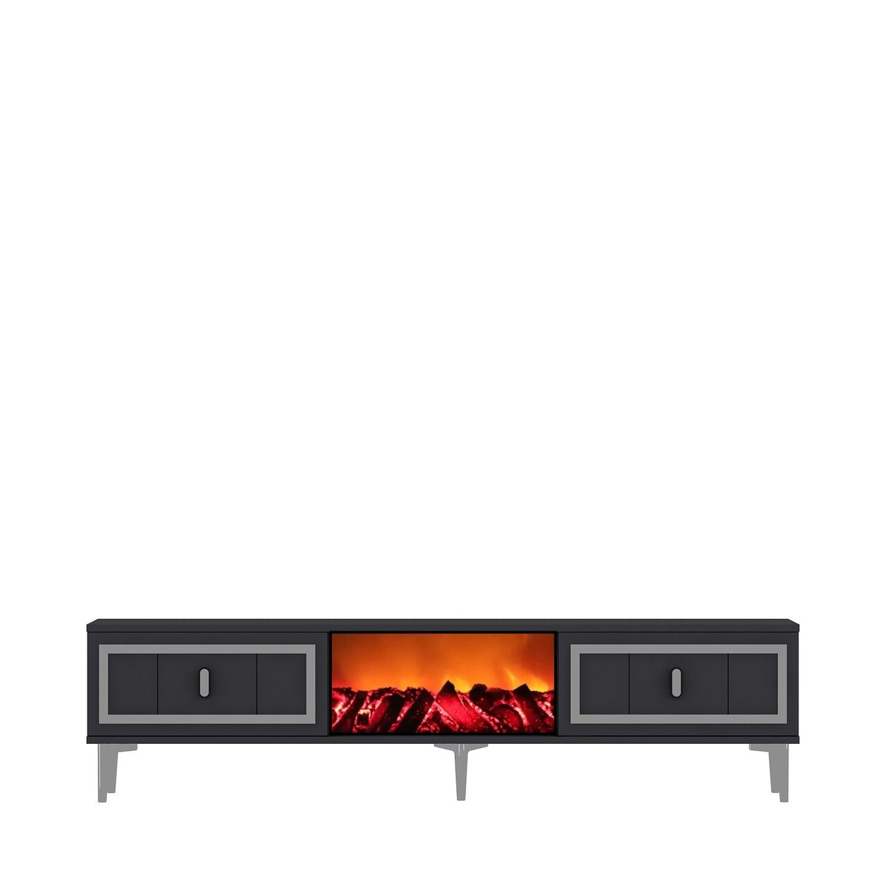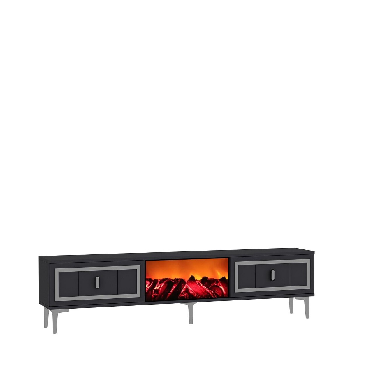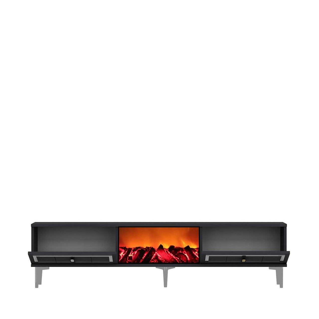 Comoda TV, Hanah Home, Orion Fireplace, 150x44.6x29.6 cm, PAL , Antracit / Argintiu