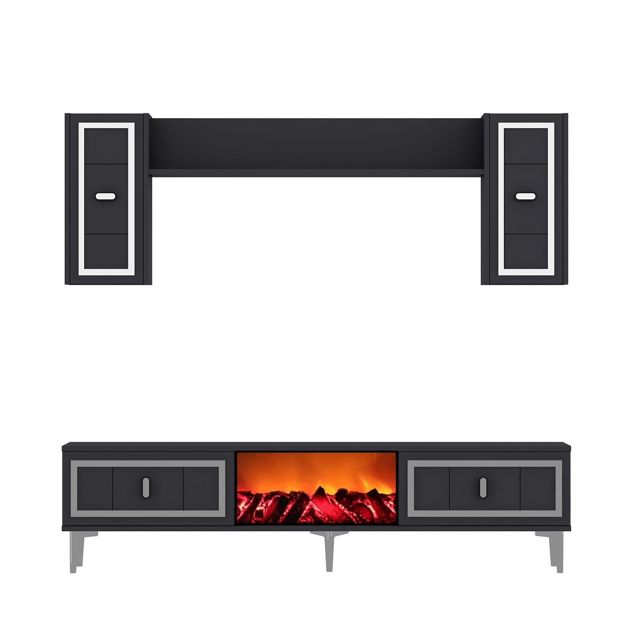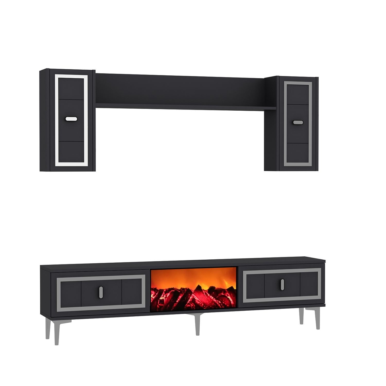 Comoda TV, Hanah Home, Orion Fireplace, 150x44.6x29.6 cm, PAL , Antracit / Argintiu