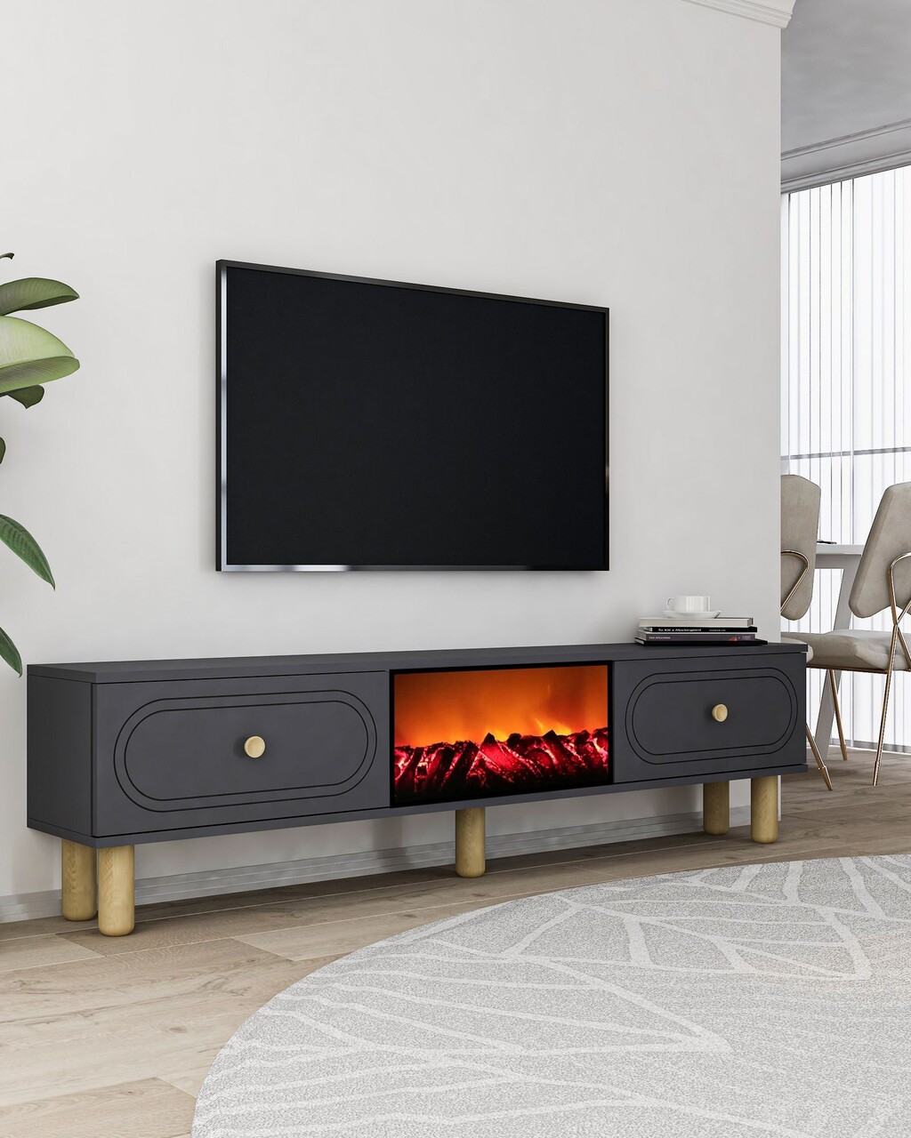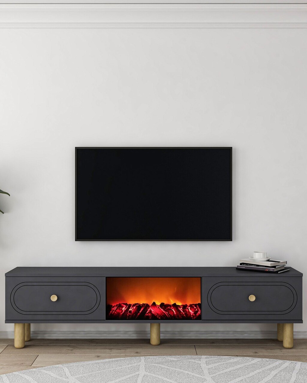 Comoda TV, Hanah Home, Polen Bohem Fireplace, 150x44.6x29.6 cm, PAL , Antracit