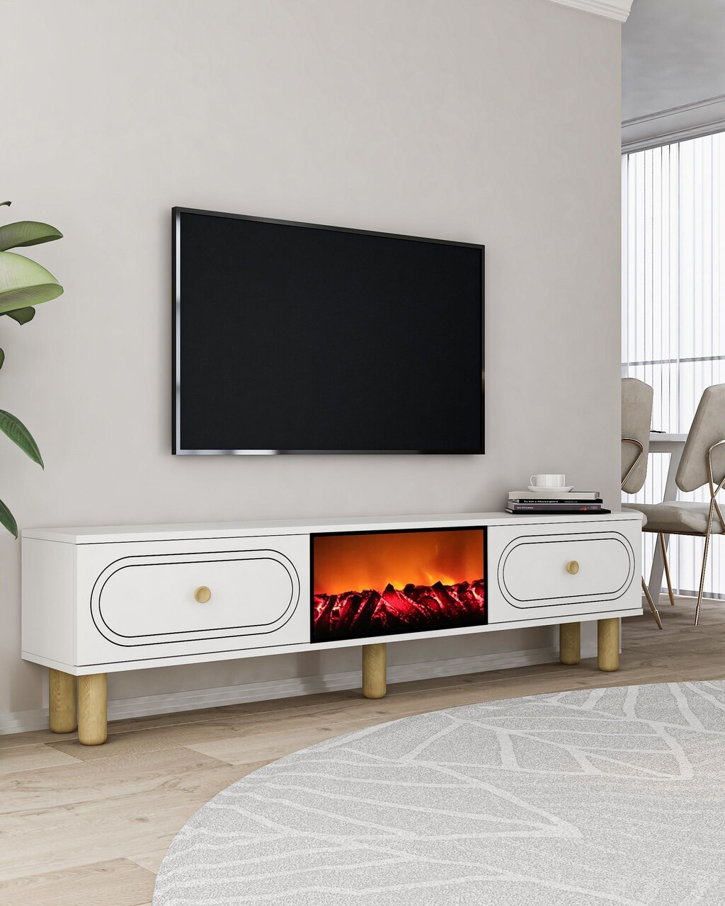 Comoda TV, Hanah Home, Polen Bohem Fireplace, 150x44.6x29.6 cm, PAL , Alb