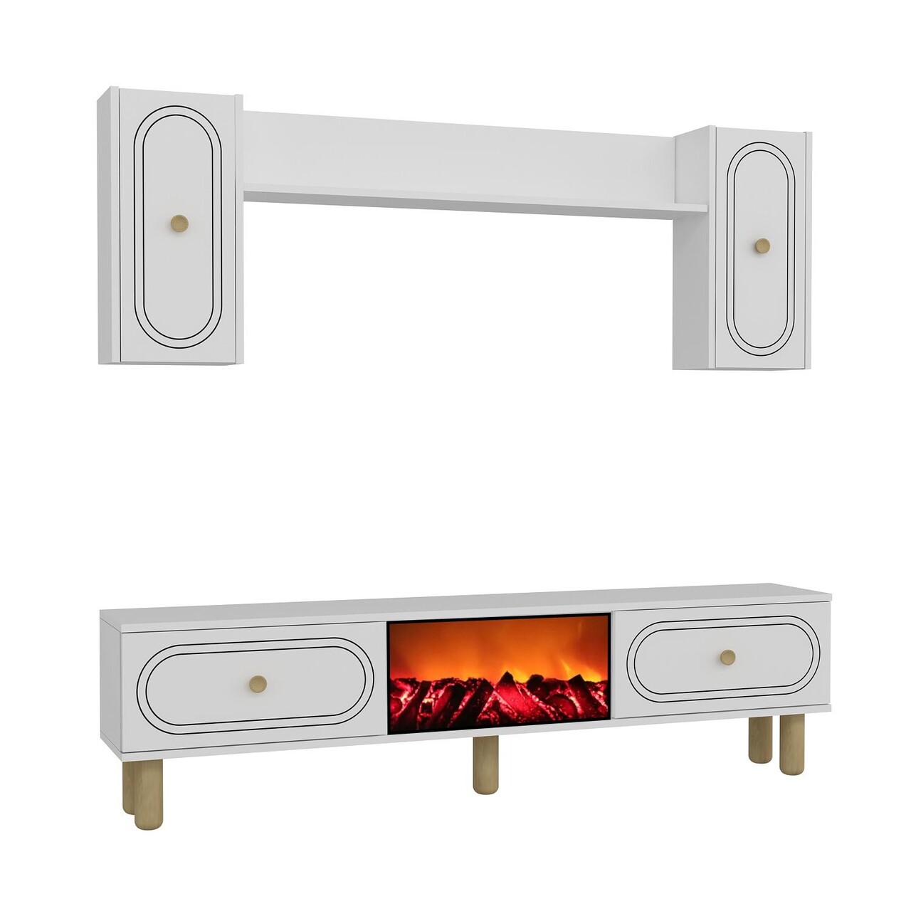 Comoda TV, Hanah Home, Polen Bohem Fireplace, 150x44.6x29.6 cm, PAL , Alb