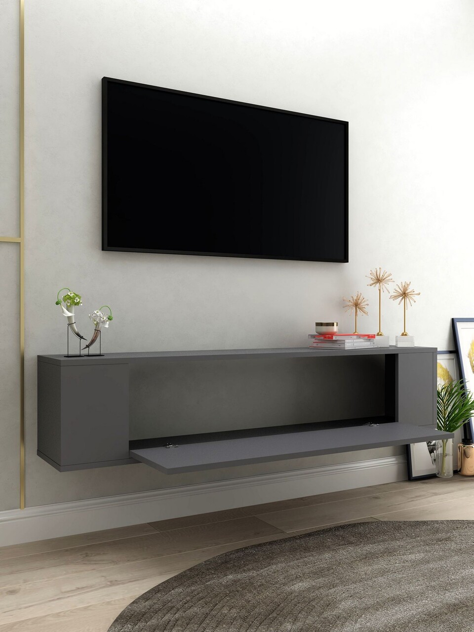 Comoda TV, Hanah Home, Restol 3, 120x33.2x26.4 cm, PAL , Antracit