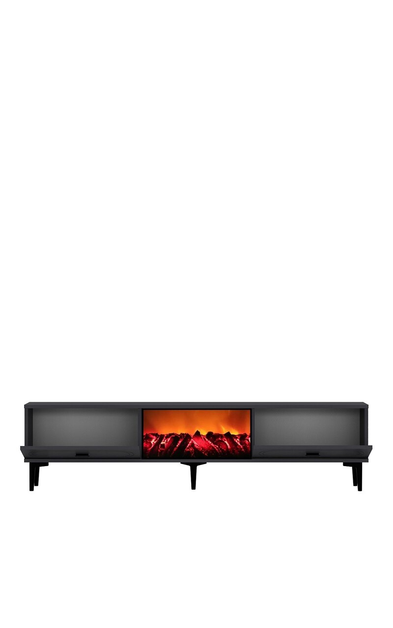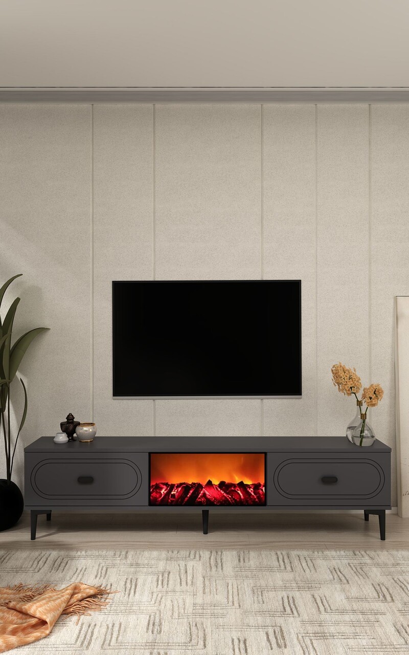 Comoda TV, Hanah Home, Weny Bohem Fireplace, 150x44.6x29.6 cm, PAL , Antracit