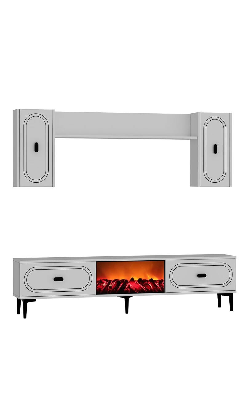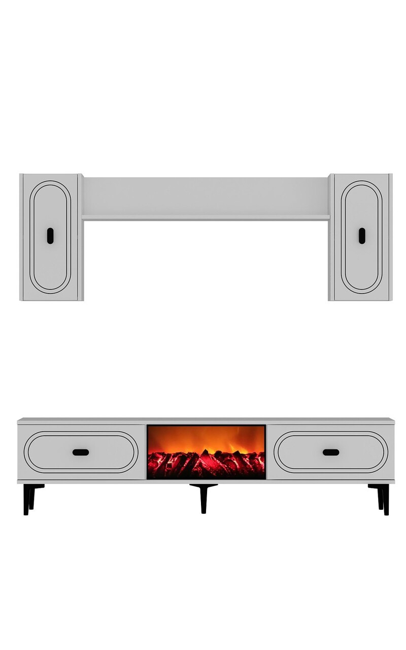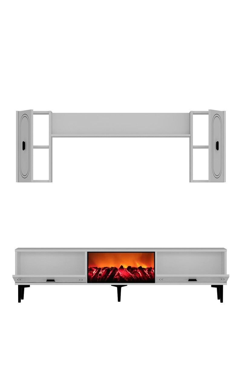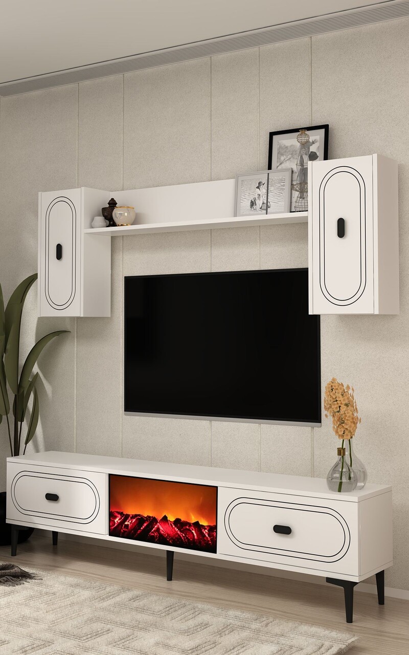 Comoda TV, Hanah Home, Weny Bohem Fireplace, 150x44.6x29.6 cm, PAL , Alb
