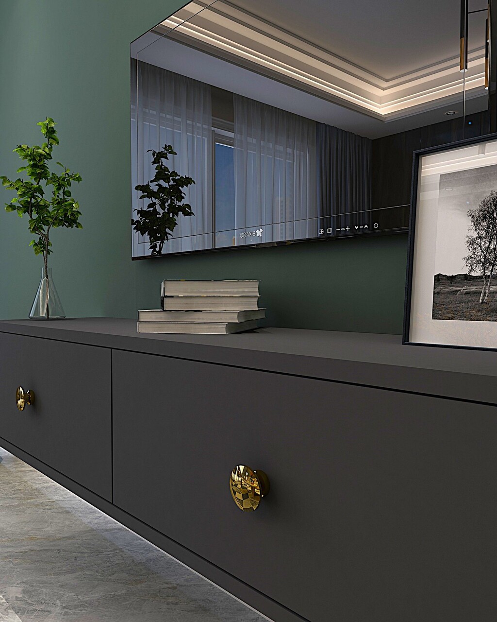 Comoda TV, Hanah Home, Zuzu 120, 120x25.8x29.6 cm, PAL , Antracit / Aur