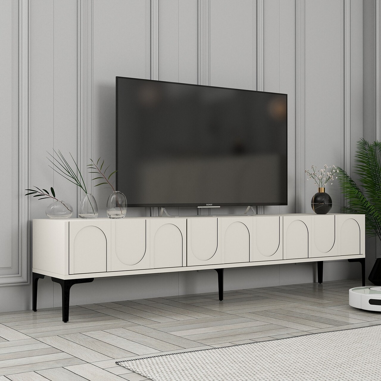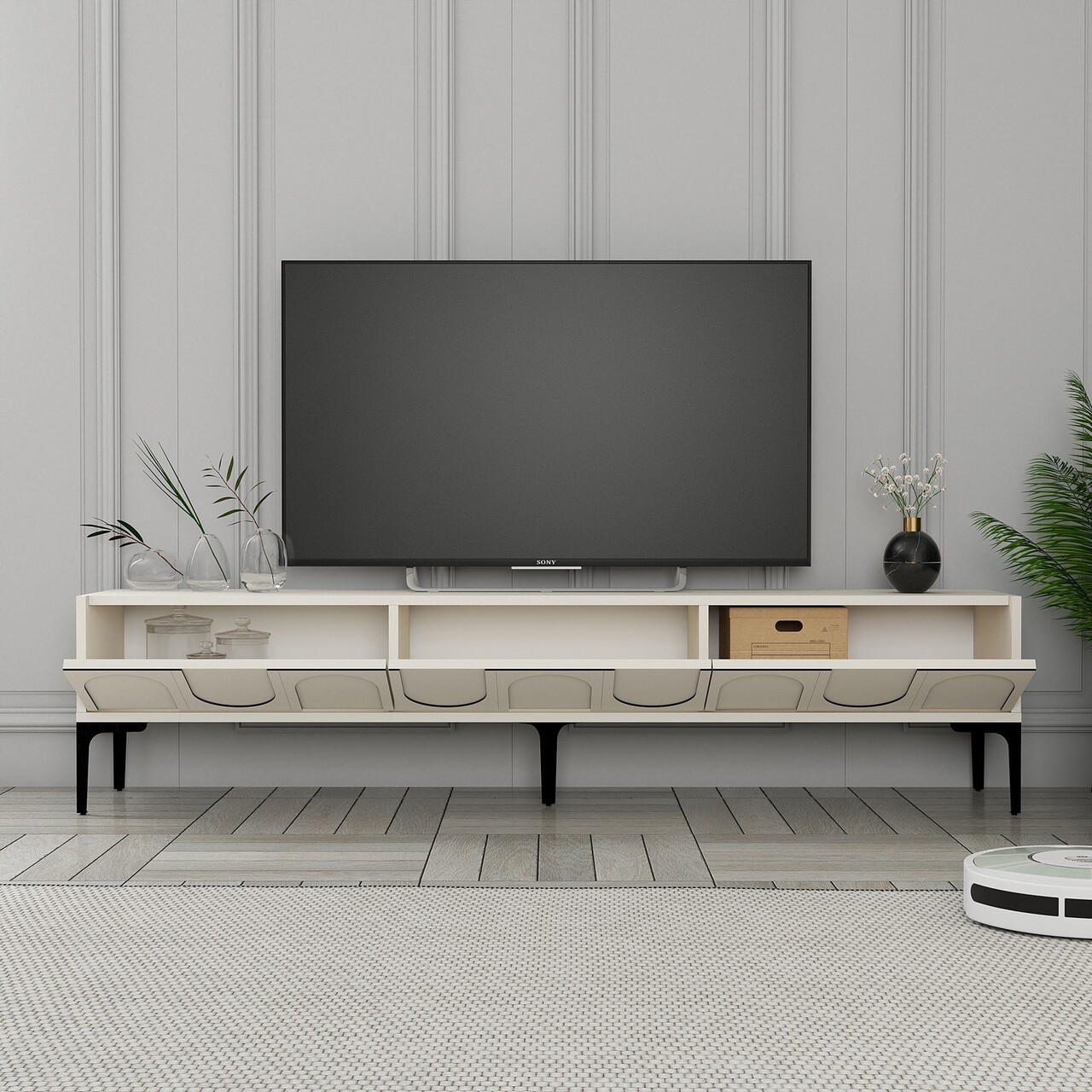 Comoda TV, Hommy Craft, Lyon 42, 180x42x35 cm, PAL, Crem/Negru