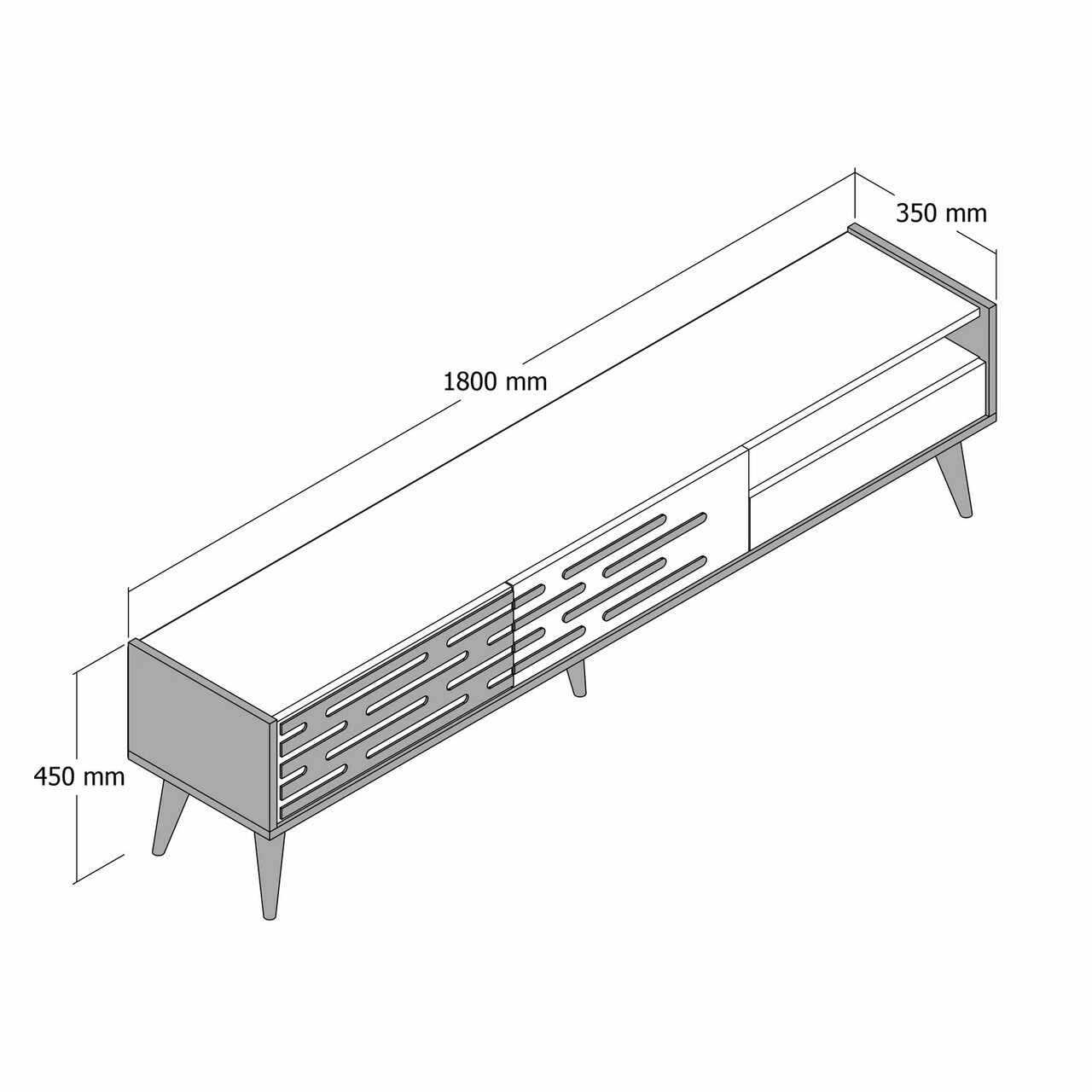 Dimensiunea suportului TV: Latime: 180 cm Inaltime: 35 cm Adancime: 45 cm