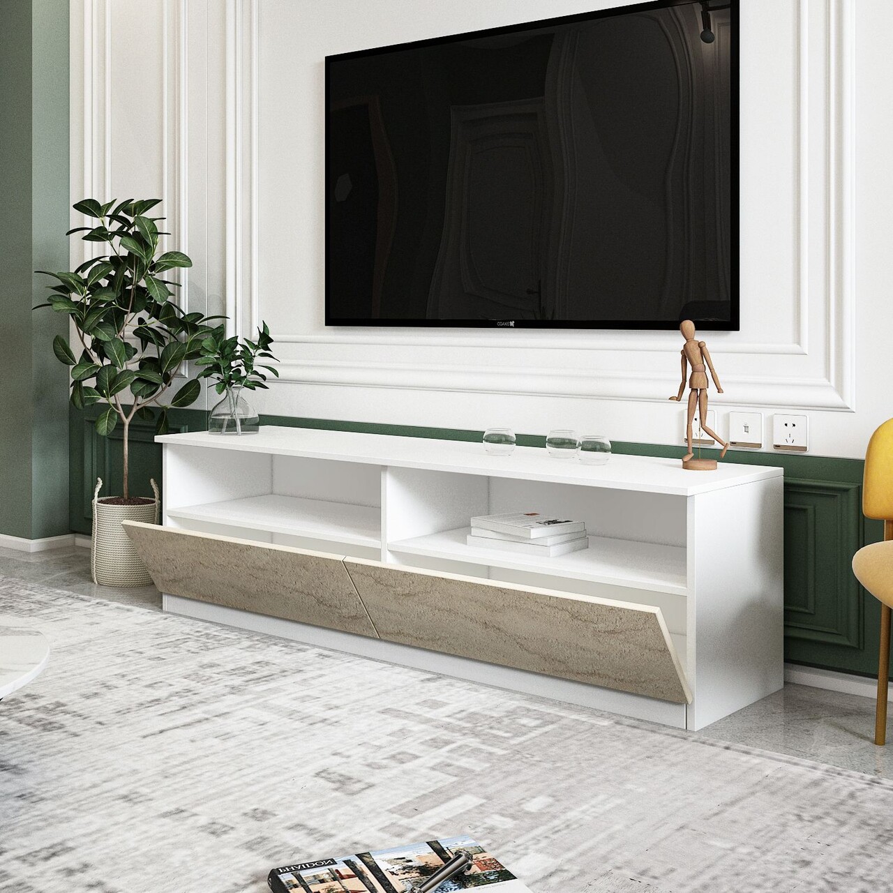 Comoda TV, Inarch, Centra, 144x49 cm, PAL, Alb / Travertin