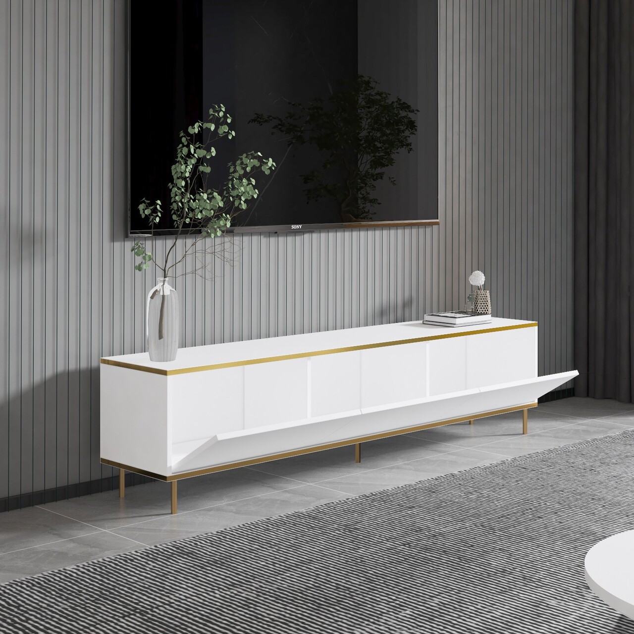 Comoda TV, Inarch, Imaj, 180x45 cm, PAL, Alb/Auriu