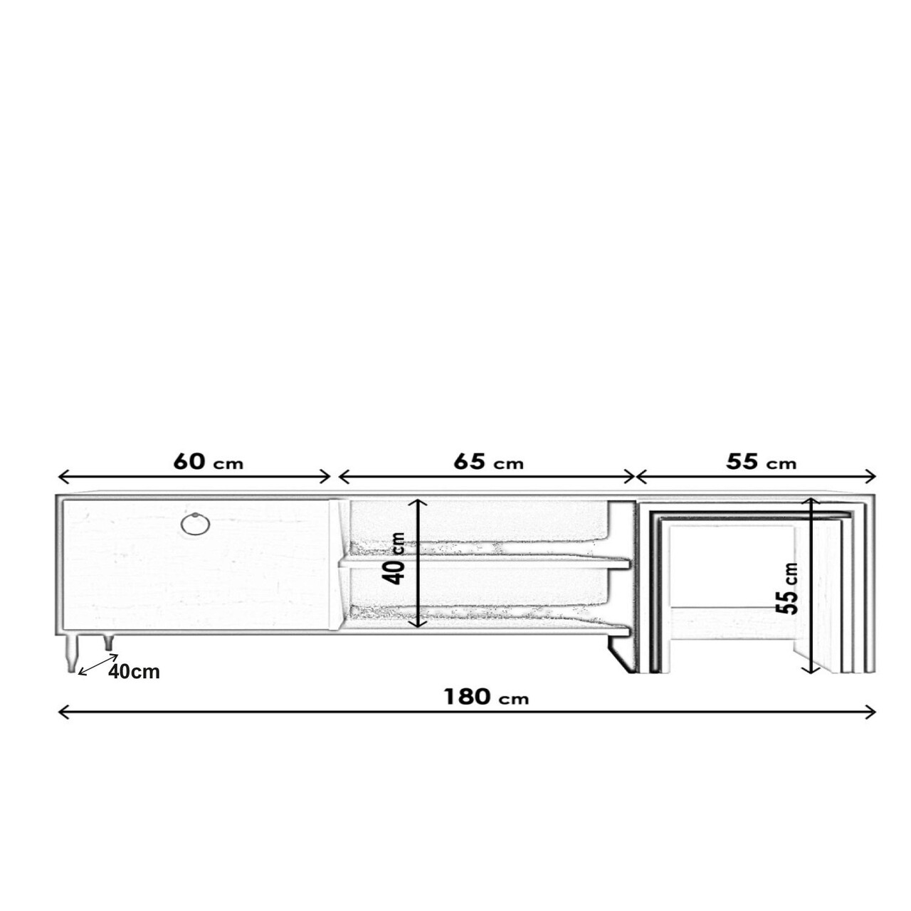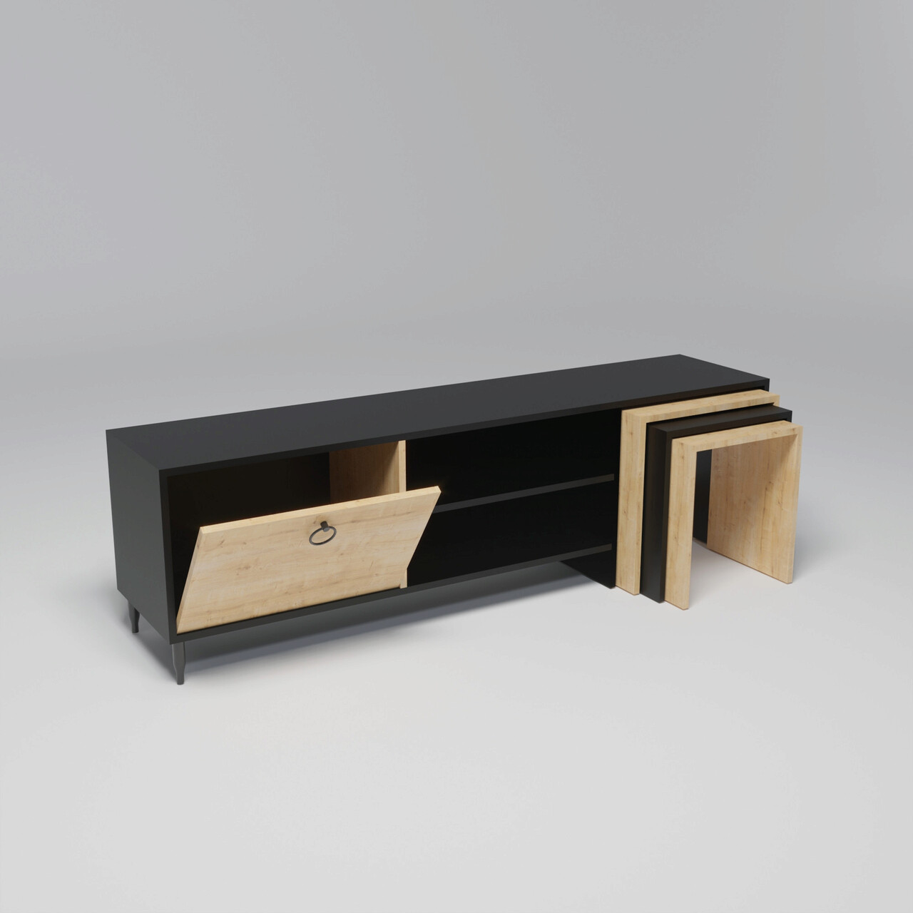 Comoda TV, Lacivert, Zigon Sehpalı Tv Ünitesi L503, Stejar / Negru
