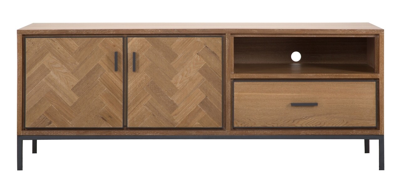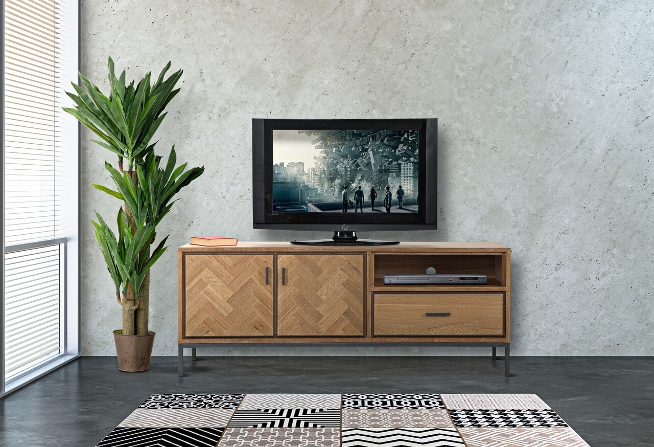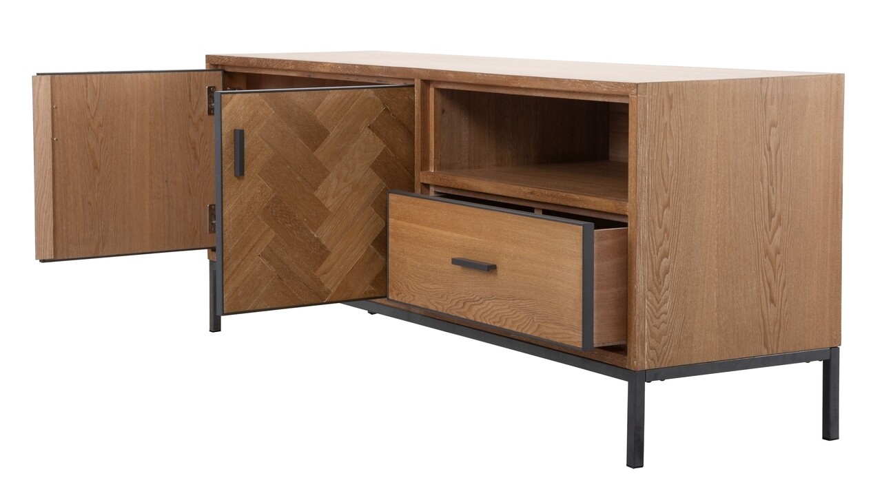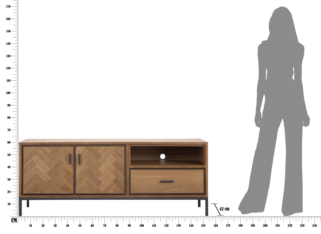 Comoda TV Male, Mauro Ferretti, 153 x 42 x 60 cm, lemn de brad/fier, maro/gri