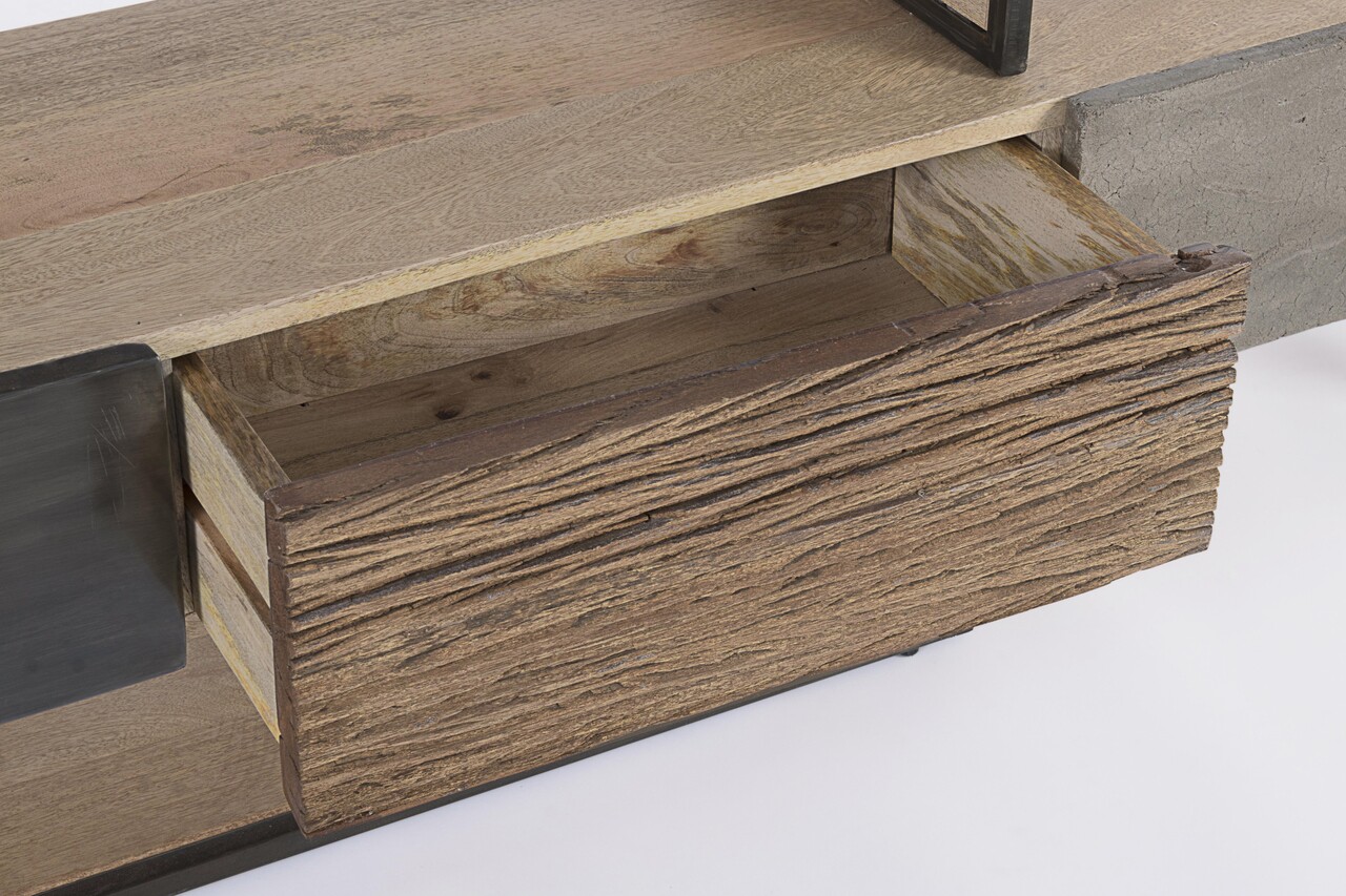 Comoda TV Manchester, Bizzotto, 195x38x60 cm, lemn de mango/otel