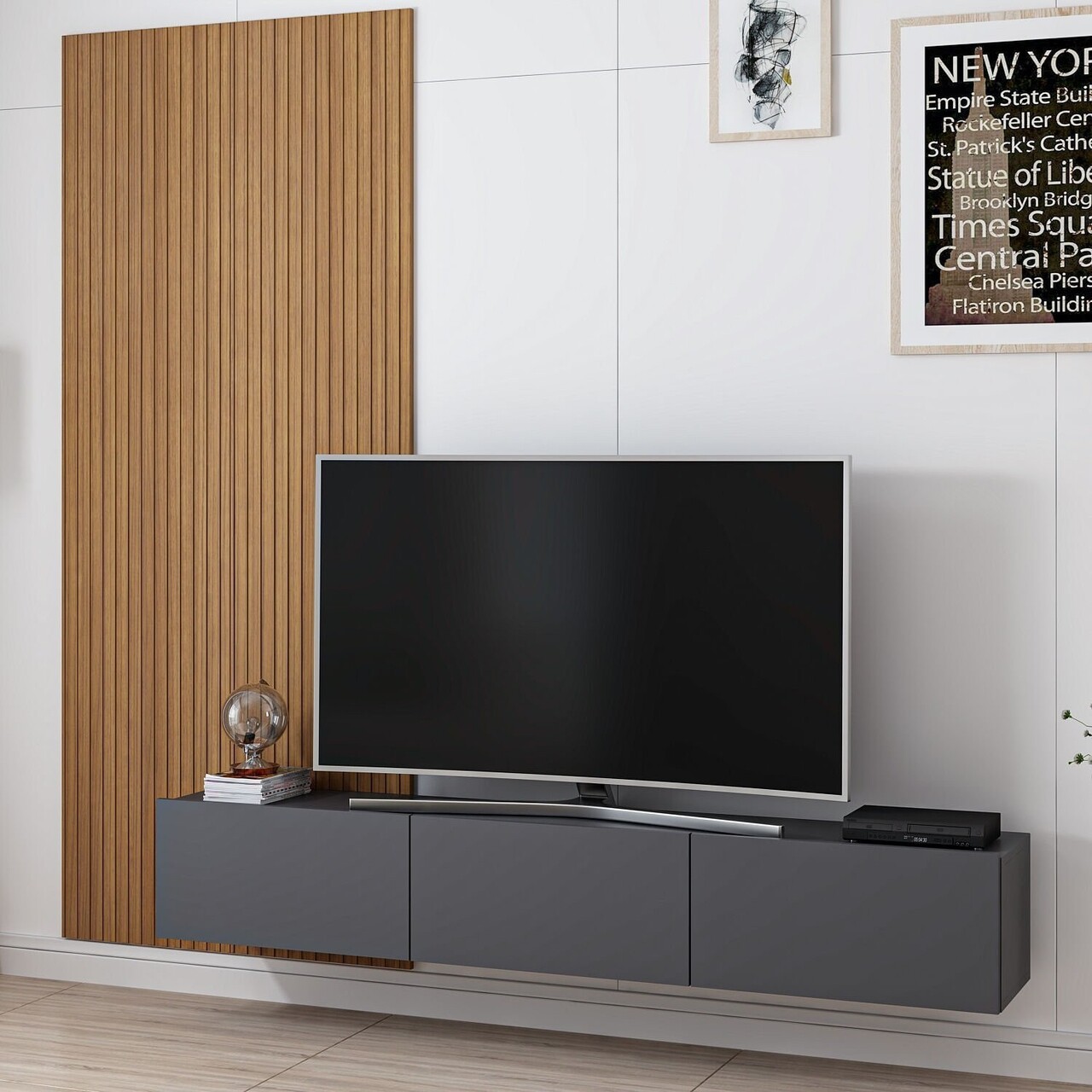 Comoda TV, Minerva, Rigel, 180x30x32 cm, PAL, Antracit / Stejar