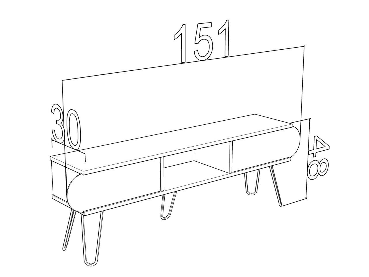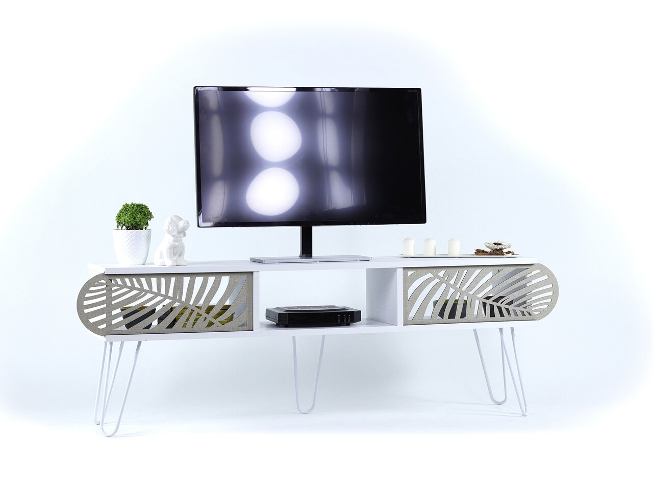 Comoda TV Mingitav Illia Maxi No.5, 151 x 30 x 48 cm, PAL/metal, alb