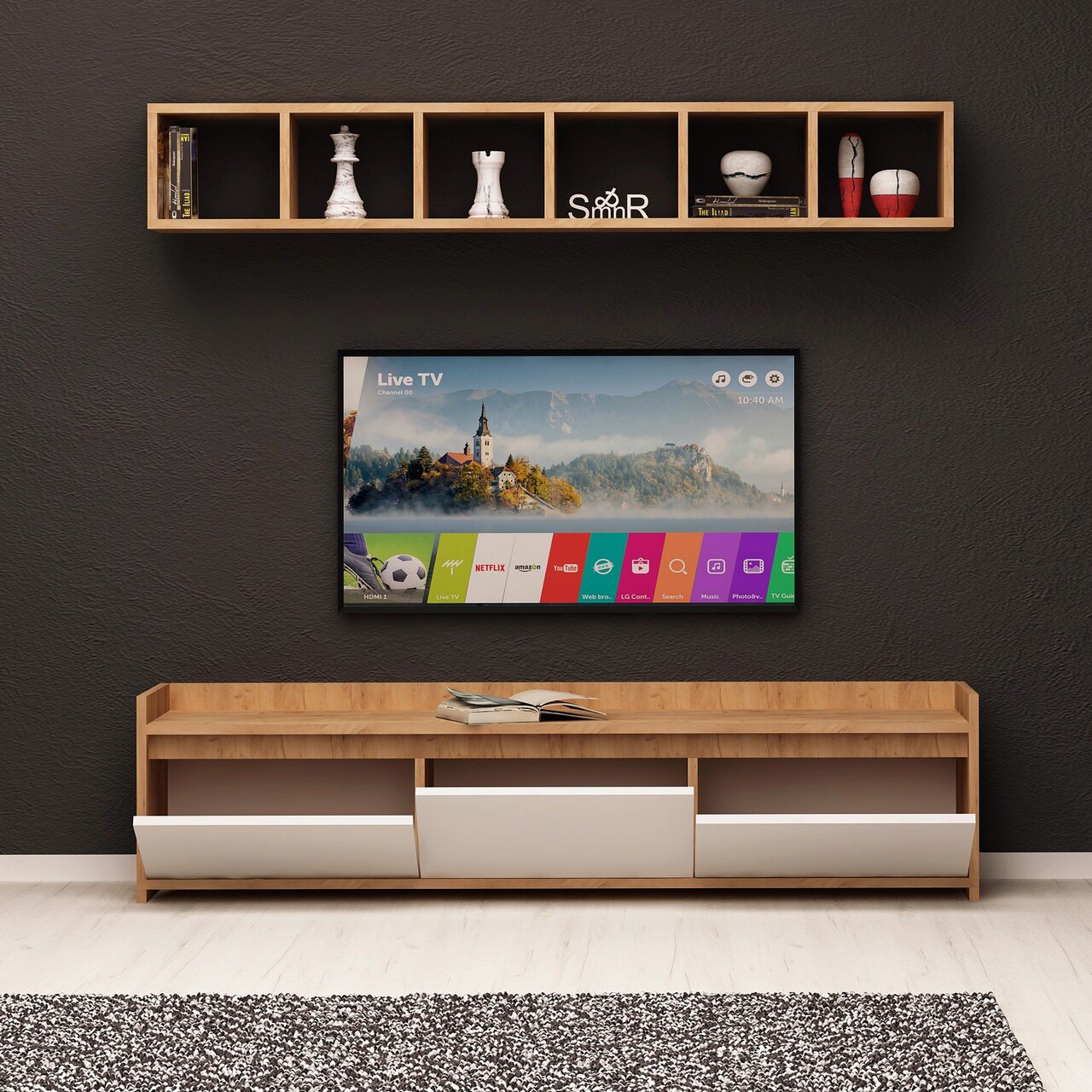 Comoda TV, Mod Design, Liçi, PAL, Stejar / Alb