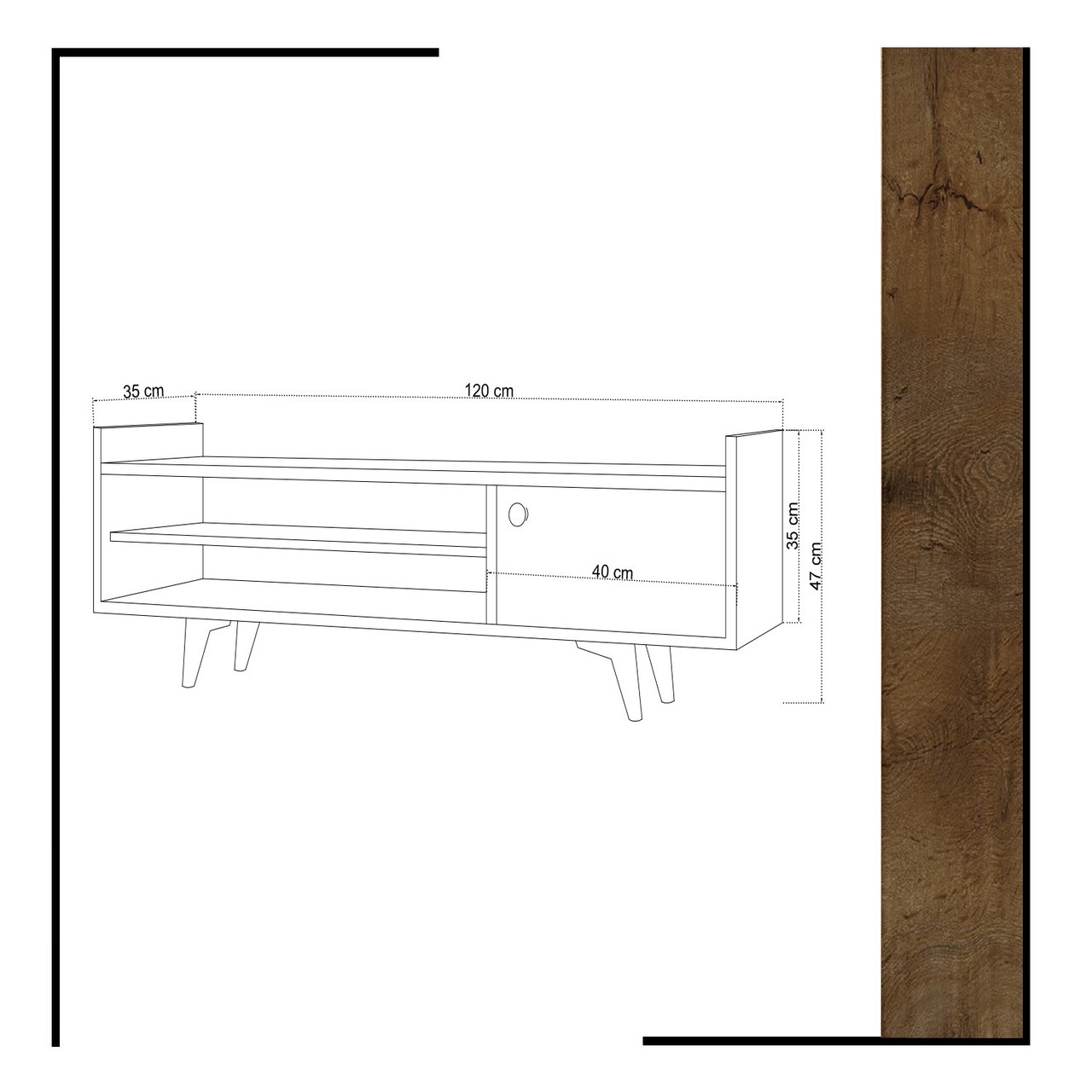 Comoda TV, Mod Design, Ticaba, 120x47x35 cm, PAL, Stejar / Alb