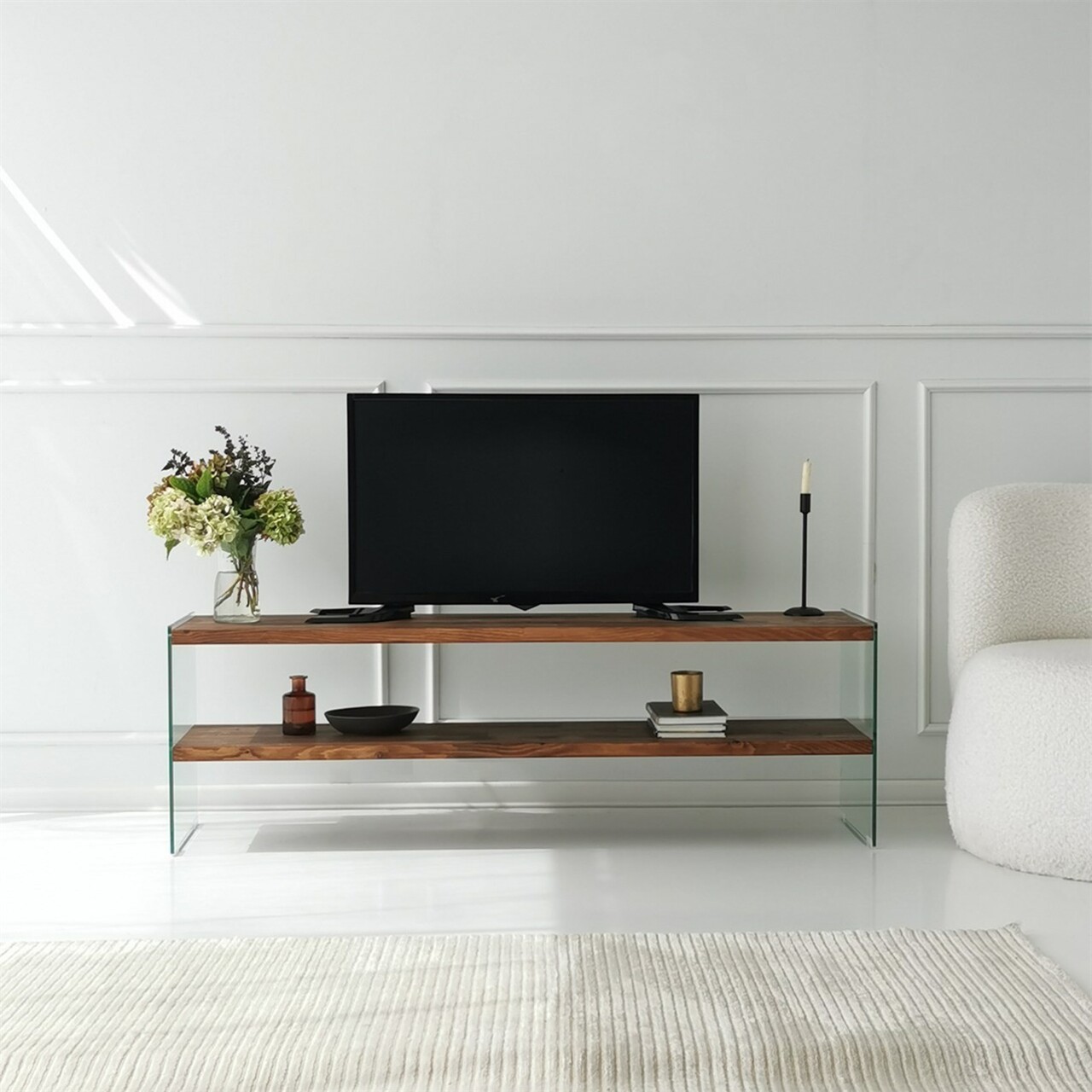 Comoda TV, Neostill, Aqua TV, 140x45x35 cm, Sticla temperata, Natural