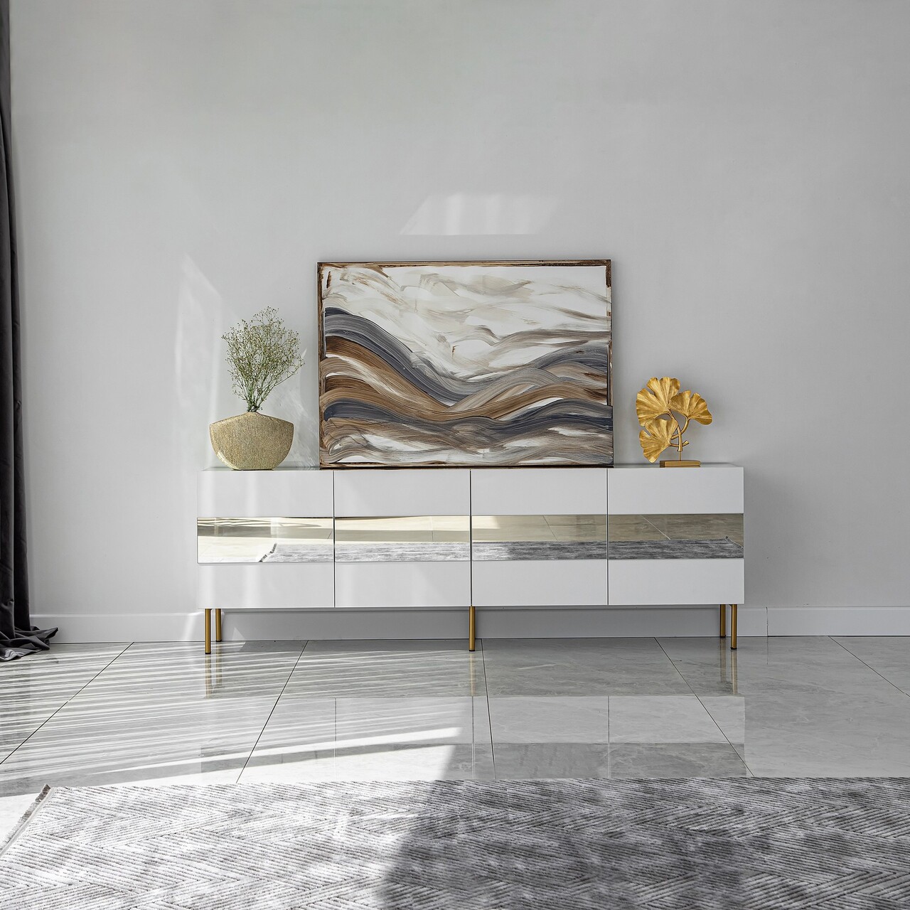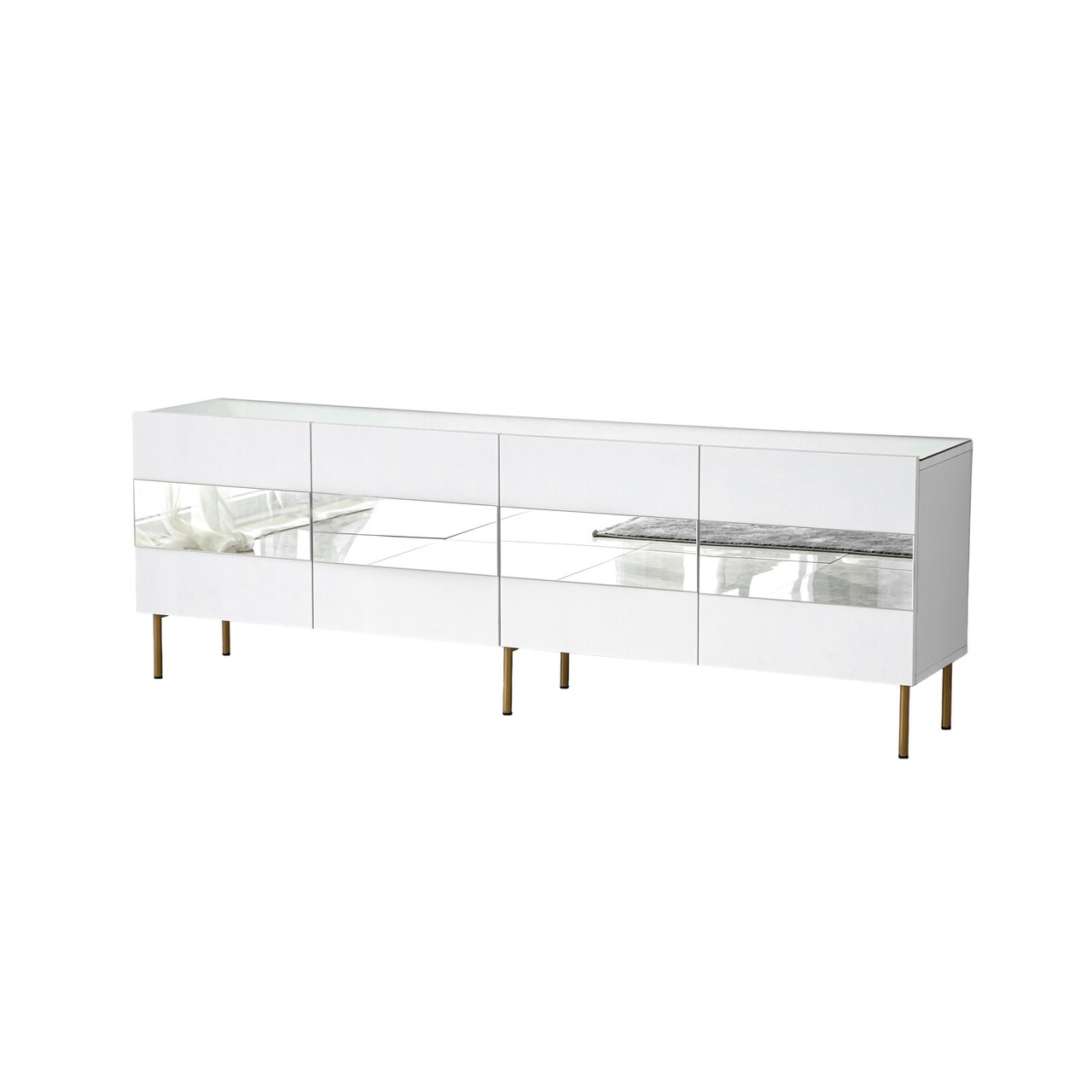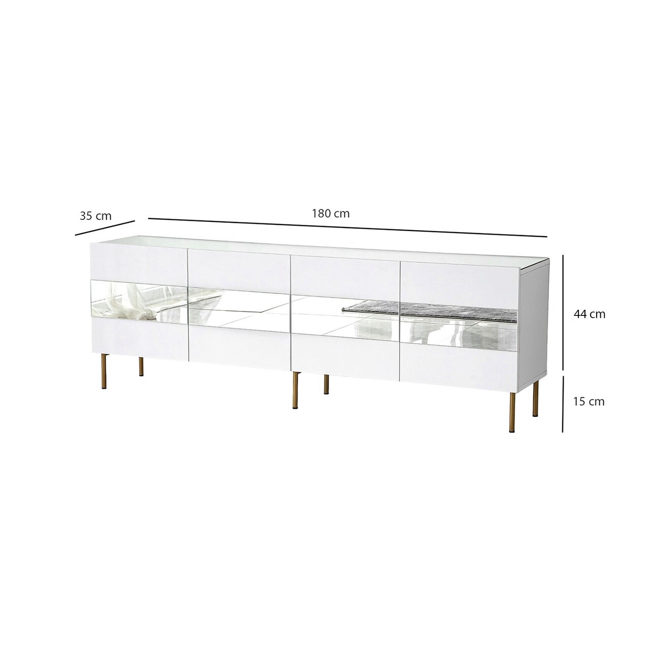 Comoda TV, Neostill, Leon, 180x59x35 cm, PAL, Alb/Auriu