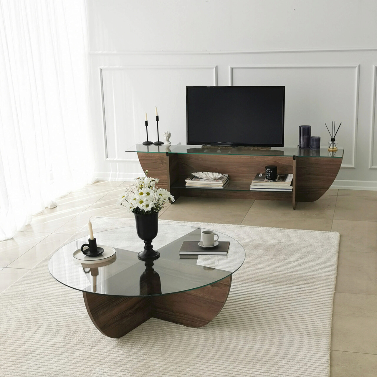 Comoda TV, Neostill, Lily TV, 158x40x35 cm, Sticla temperata , Maro