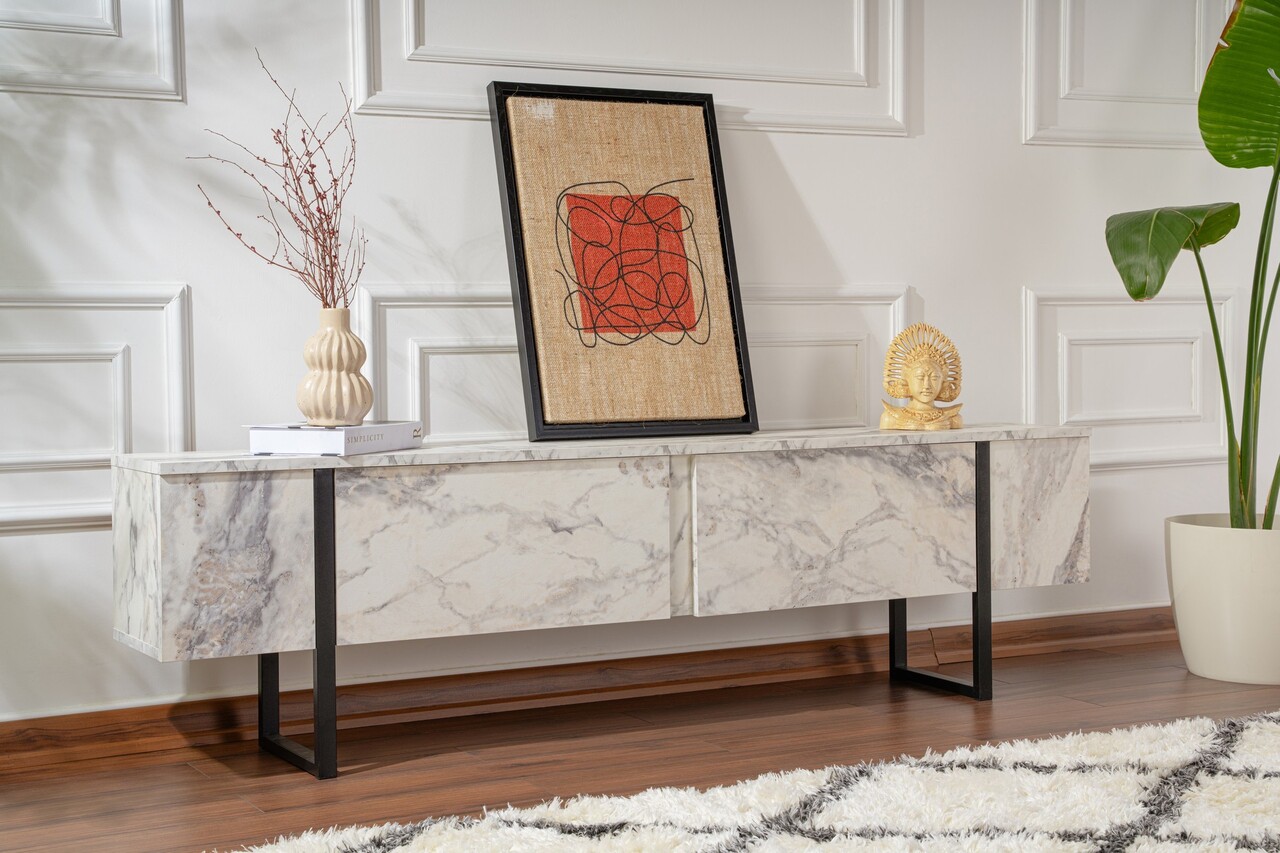 Comoda TV, Nordure, Serenity, 180x50x29 cm, PAL, Marmură Freesia / Negru